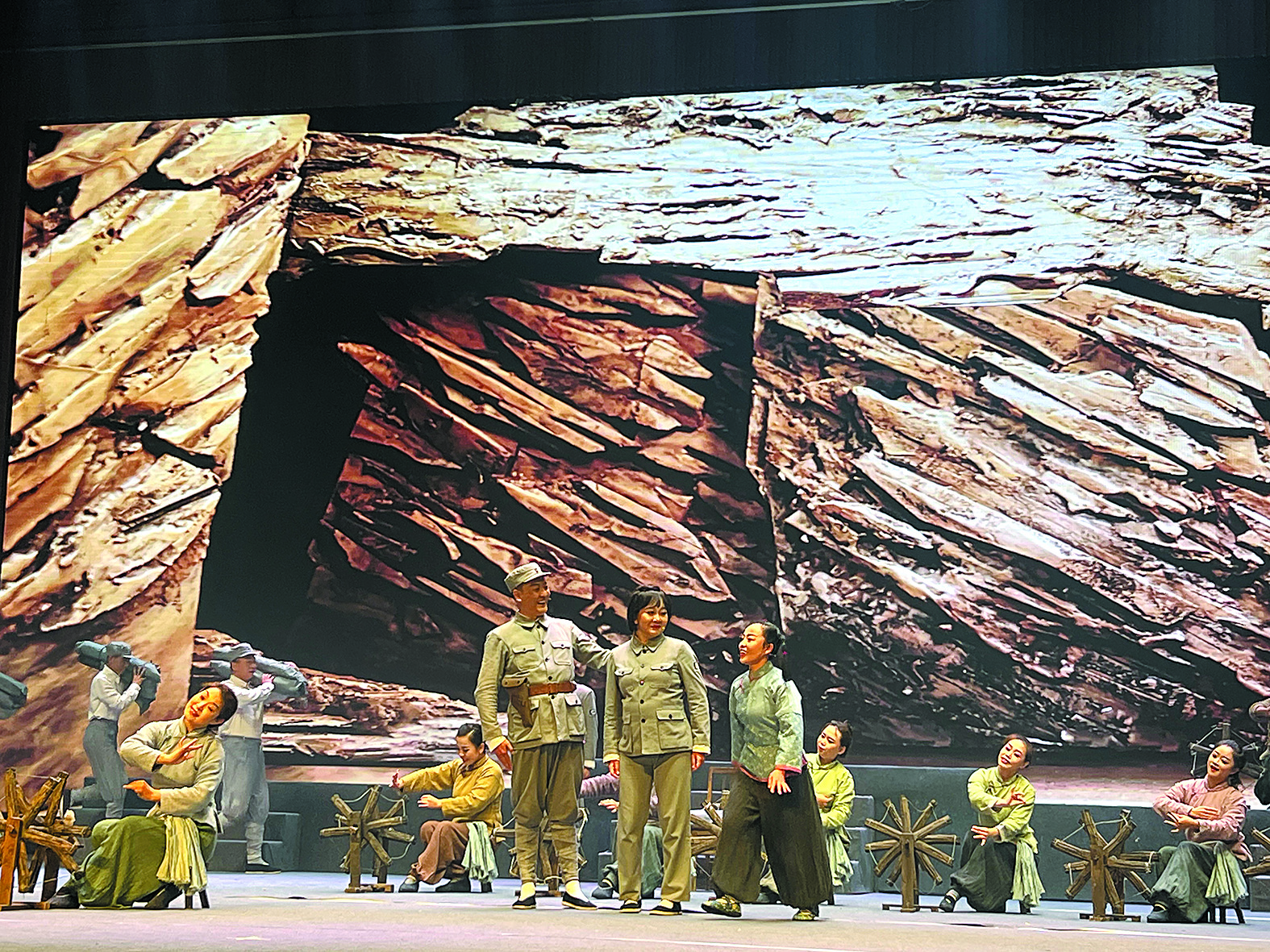 《烽火家书》以歌舞剧的形式,融入左权县民歌、小花戏舞蹈等非遗元素,再现军民团结的抗战场面,艺术性与历史感并重,通过一页页发黄的信纸和那些斑驳的字迹,述说着家与国的牵挂与温情。“太行为证”“碧血丹心”等六个篇章陆续演绎,战场硝烟、延安牵挂与醴陵守望三重时空交织呈现,革命先辈的铁血柔情与家国大义跃然眼前。