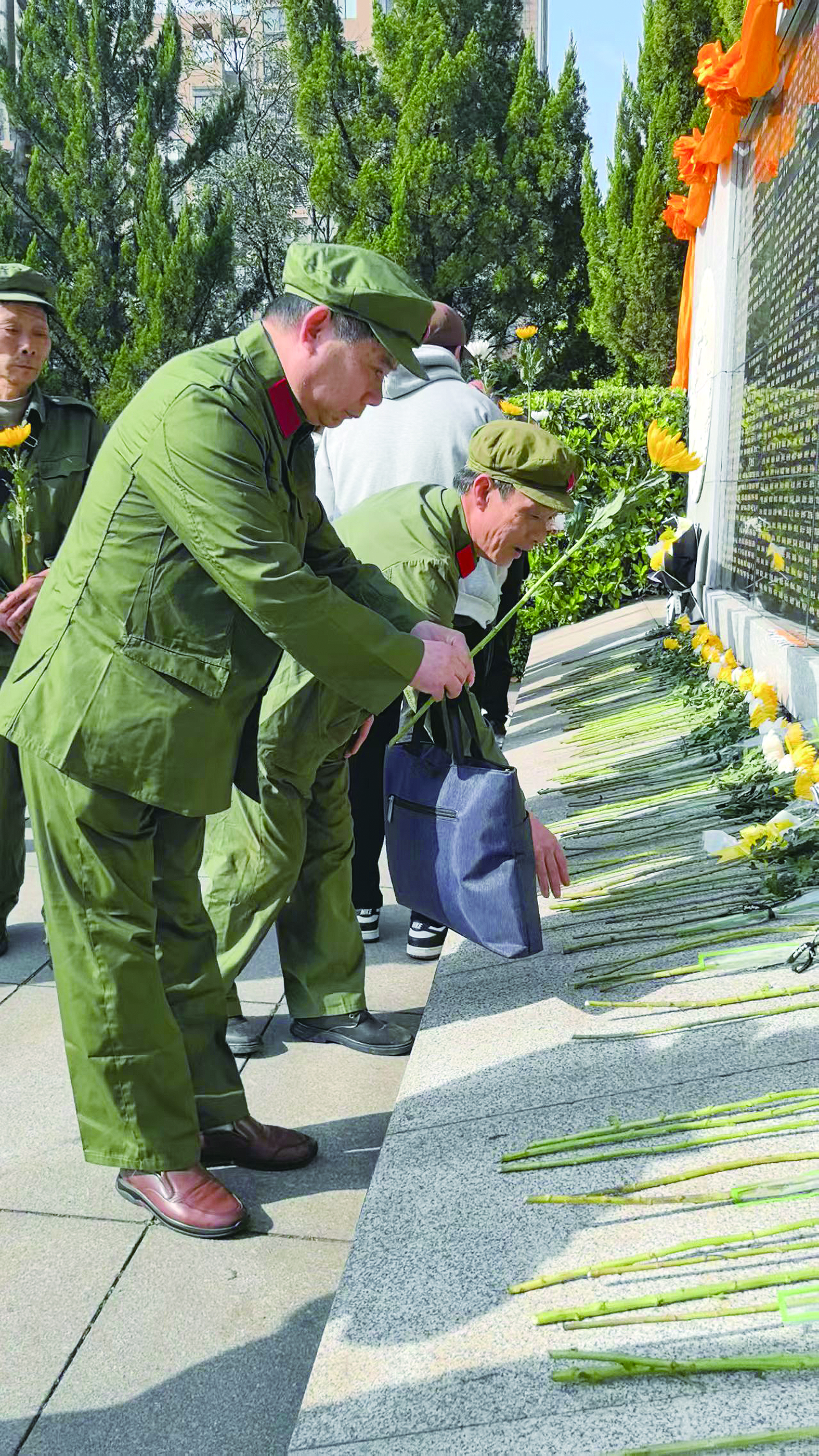 图为退伍老兵代表向英烈致敬