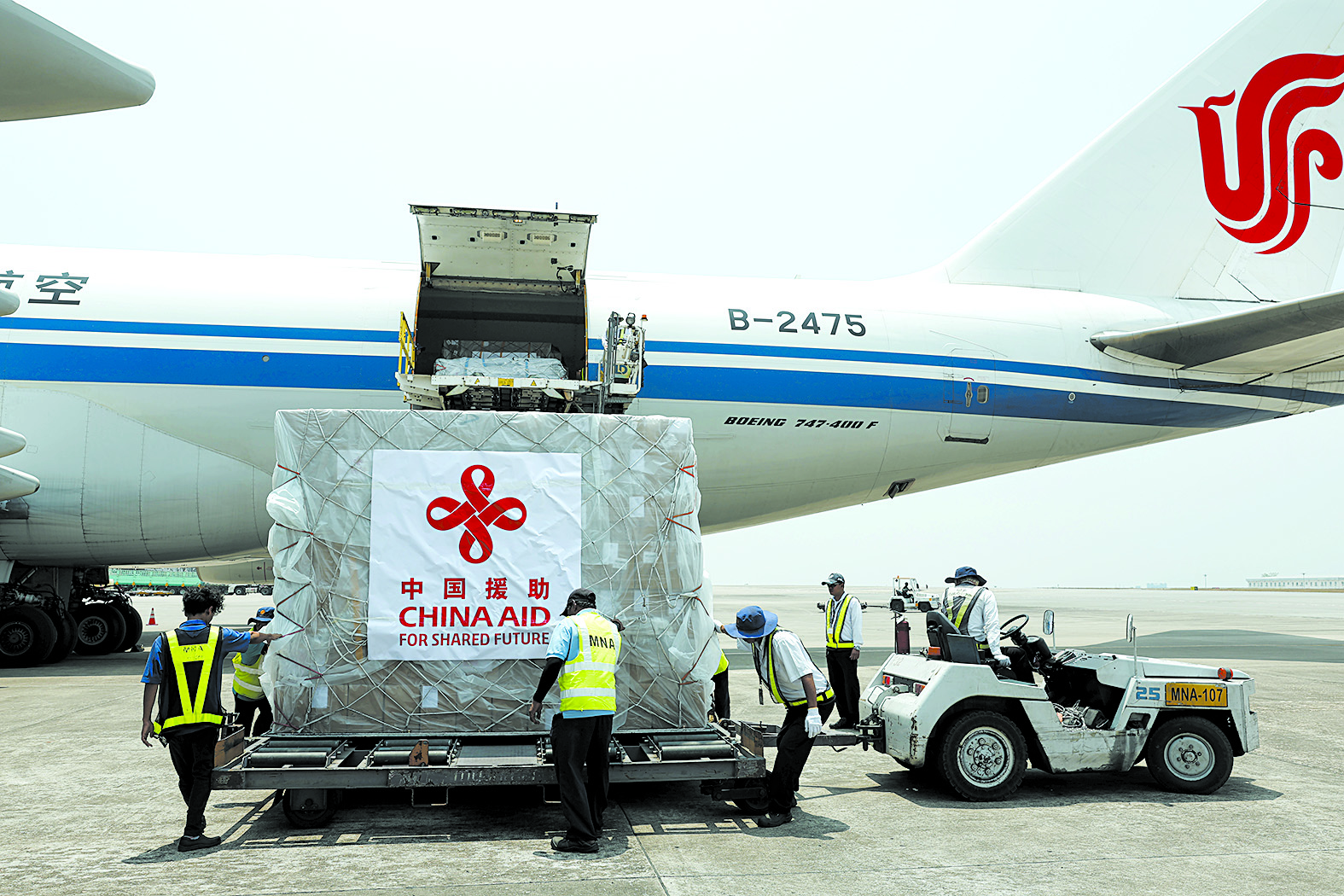 当地时间3月31日,中国政府首批援助物资抵达缅甸仰光国际机场。新华社发(亨曼 摄)
