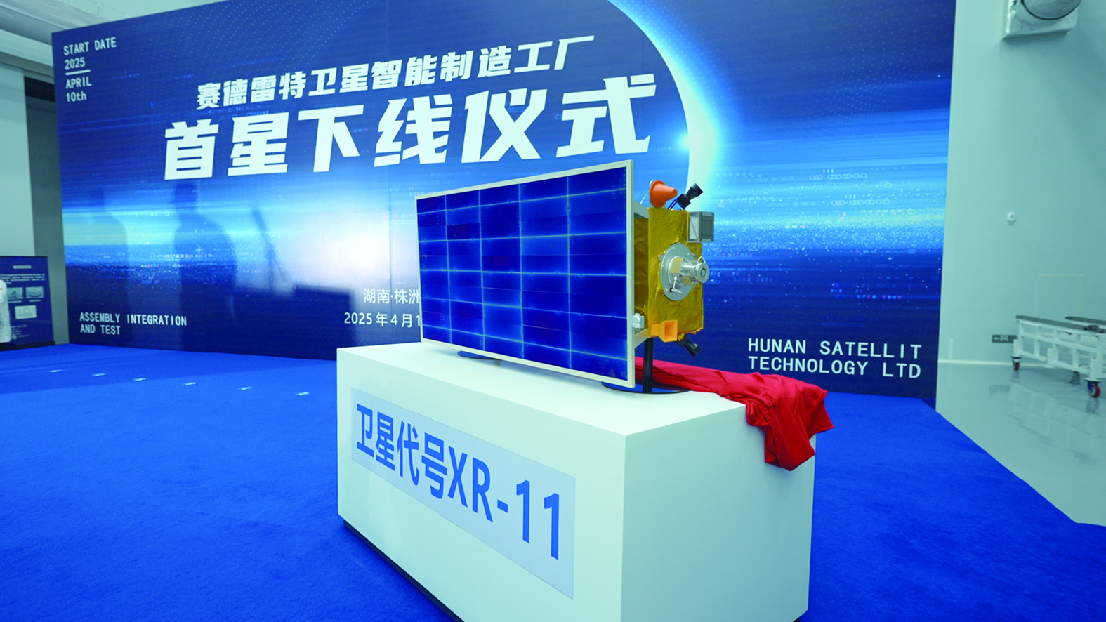 “XR-11”卫星是首颗株洲制造的遥感卫星,由湖南赛德雷特卫星科技有限公司设计、研发、制造,在赛德雷特卫星智能制造工厂完成总装、集成、测试(AIT),仪式后将出征前往甘肃酒泉卫星发射中心,计划5月择期发射。