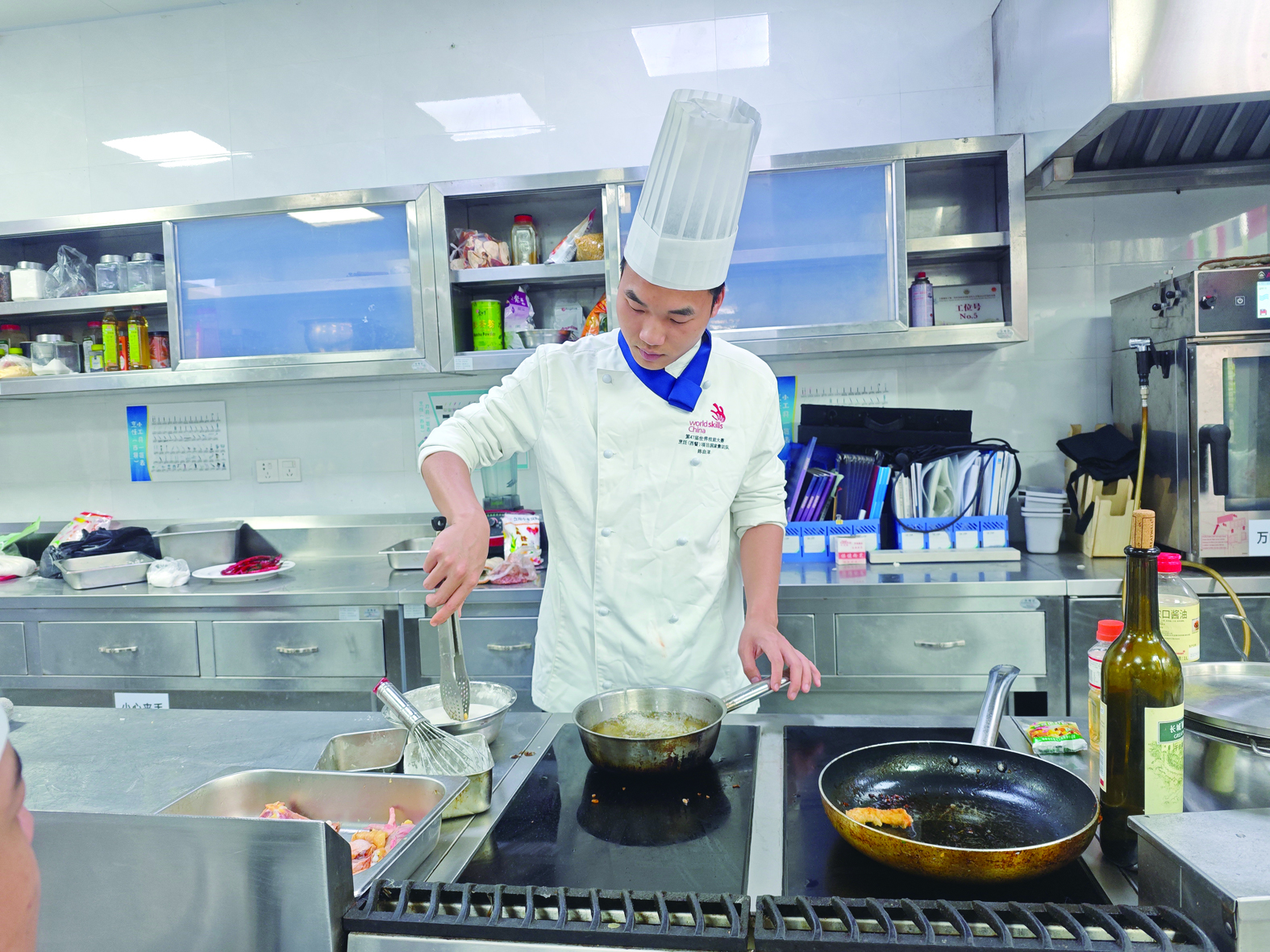 “其他同学训练完去了食堂,我就在实训室里烹饪了大伙训练留下来的食材作品,既解决了吃饭问题,又训练了自己的味觉。”采访中,陈自洋憨厚地说。