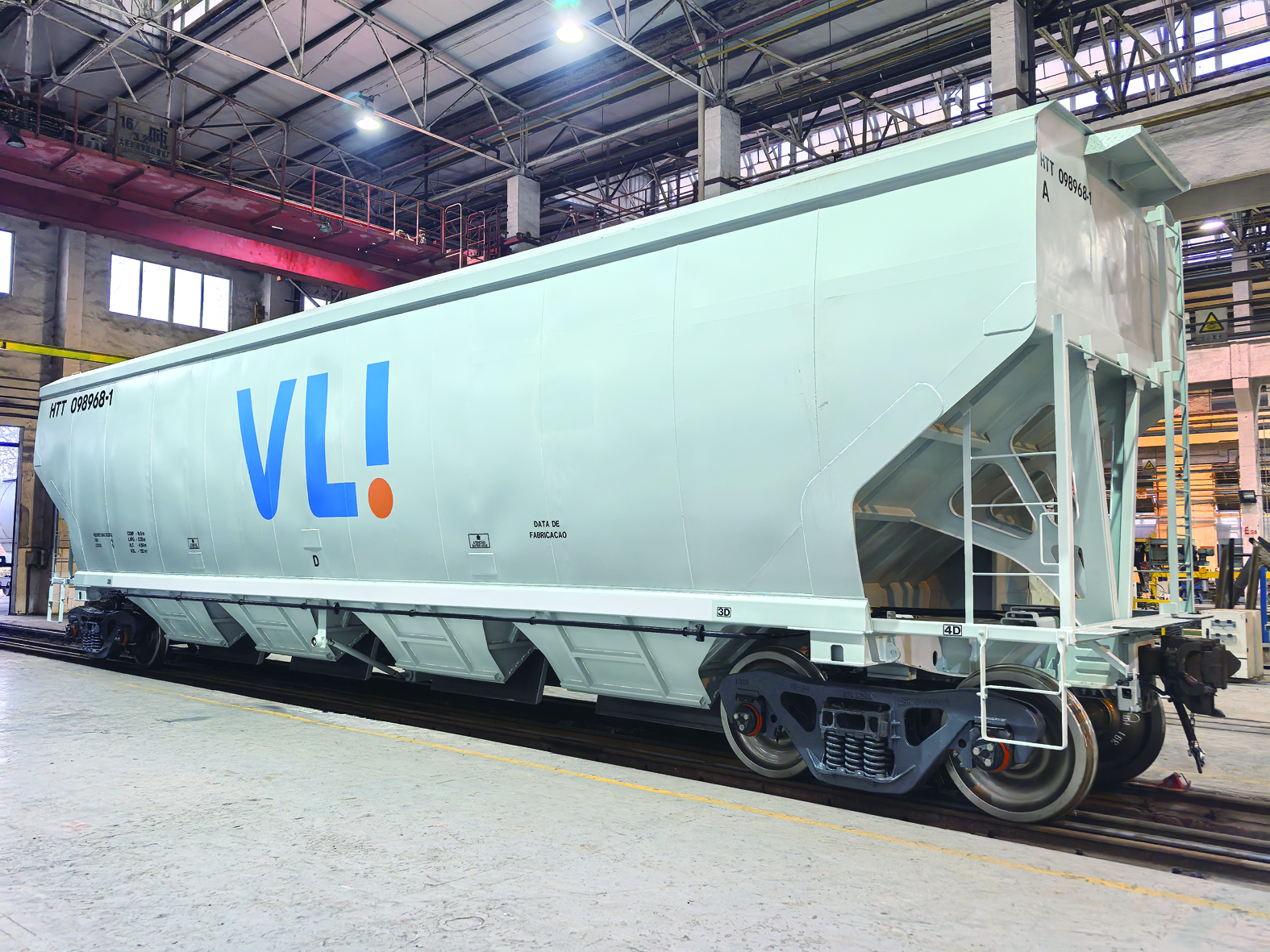 该车型自重约28.5吨,载重高达101.5吨,最高运行速度可达80公里/小时,将用于运输大豆、豆粕、散装糖、肥料和磷酸盐等货物,为巴西四大运营商之一的VLI公司提供更安全、更高效的铁路物流解决方案,助力其提升运营效率。