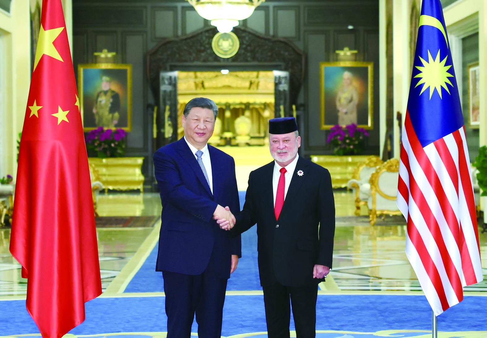 4月16日上午,马来西亚最高元首易卜拉欣在马来西亚国家王宫同中国国家主席习近平举行会见。新华社记者 黄敬文 摄