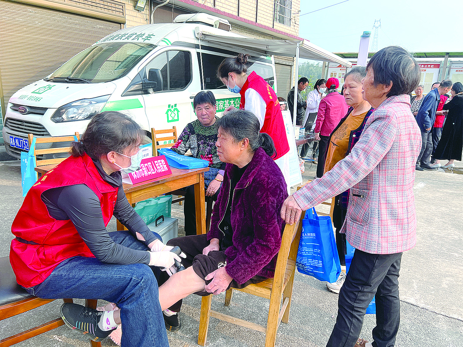 近日,渌口区人民医院联合医共体南洲镇卫生院、村卫生室组成公卫零距离服务团队,前往渌口区南洲镇洪垅村,为村民开展健康体检。团队借助便携式云体检车及各类设备,现场出具并解读报告,给予诊疗建议,同时针对行动不便、慢性病共患居民上门服务。