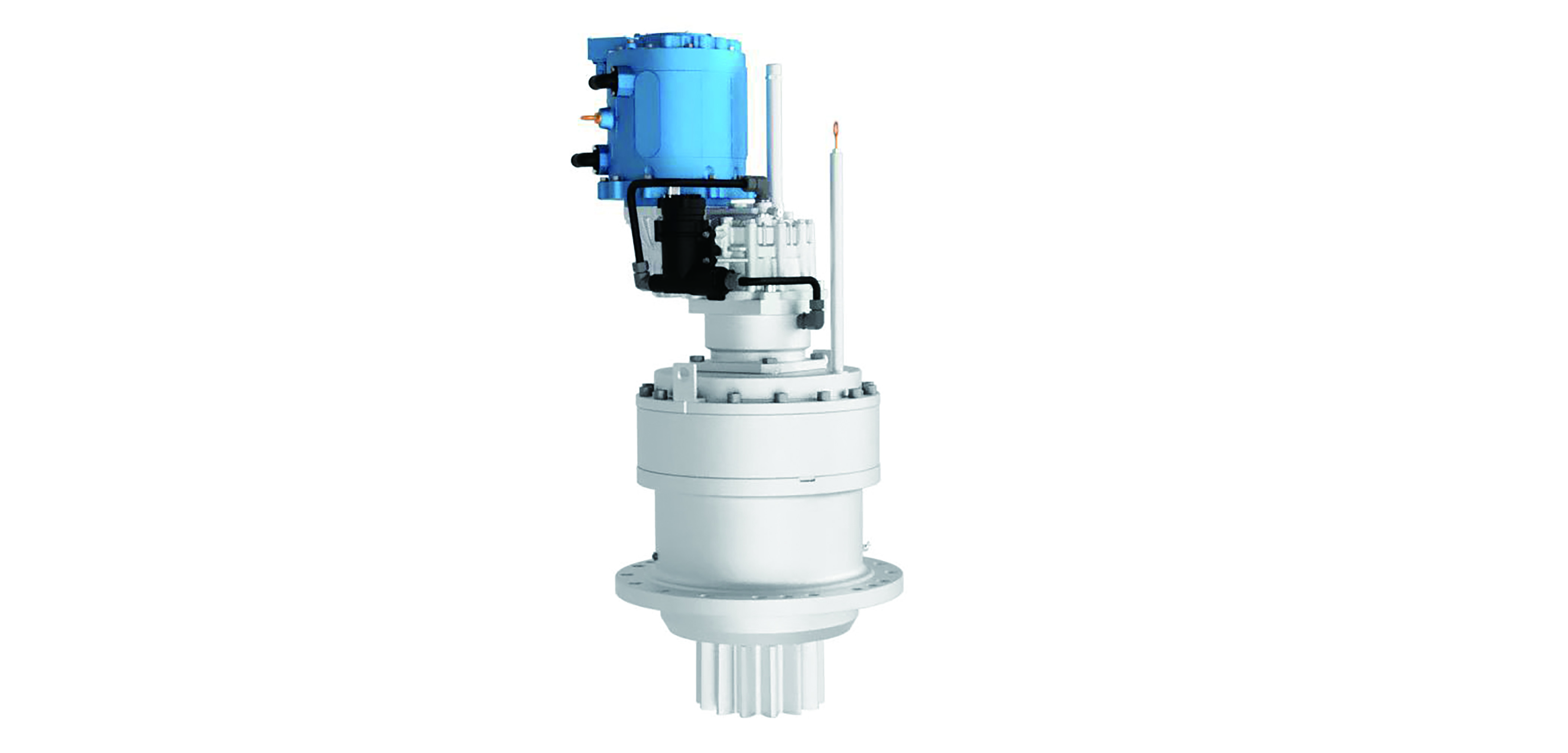 近日,记者在株齿生产车间内看到了这款量产的高速电驱回转系统。该产品为直立型结构,由高速电机、减速器、制动器等组成,对比传统液压回转系统,其采用电力驱动,具有启停响应快、控制精度高、节能低成本等显著优势。