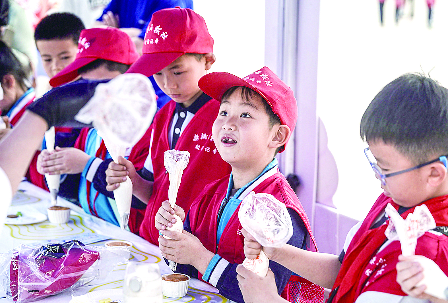 活动现场,株洲日报校园记者跟着技能大师学习面点制作。