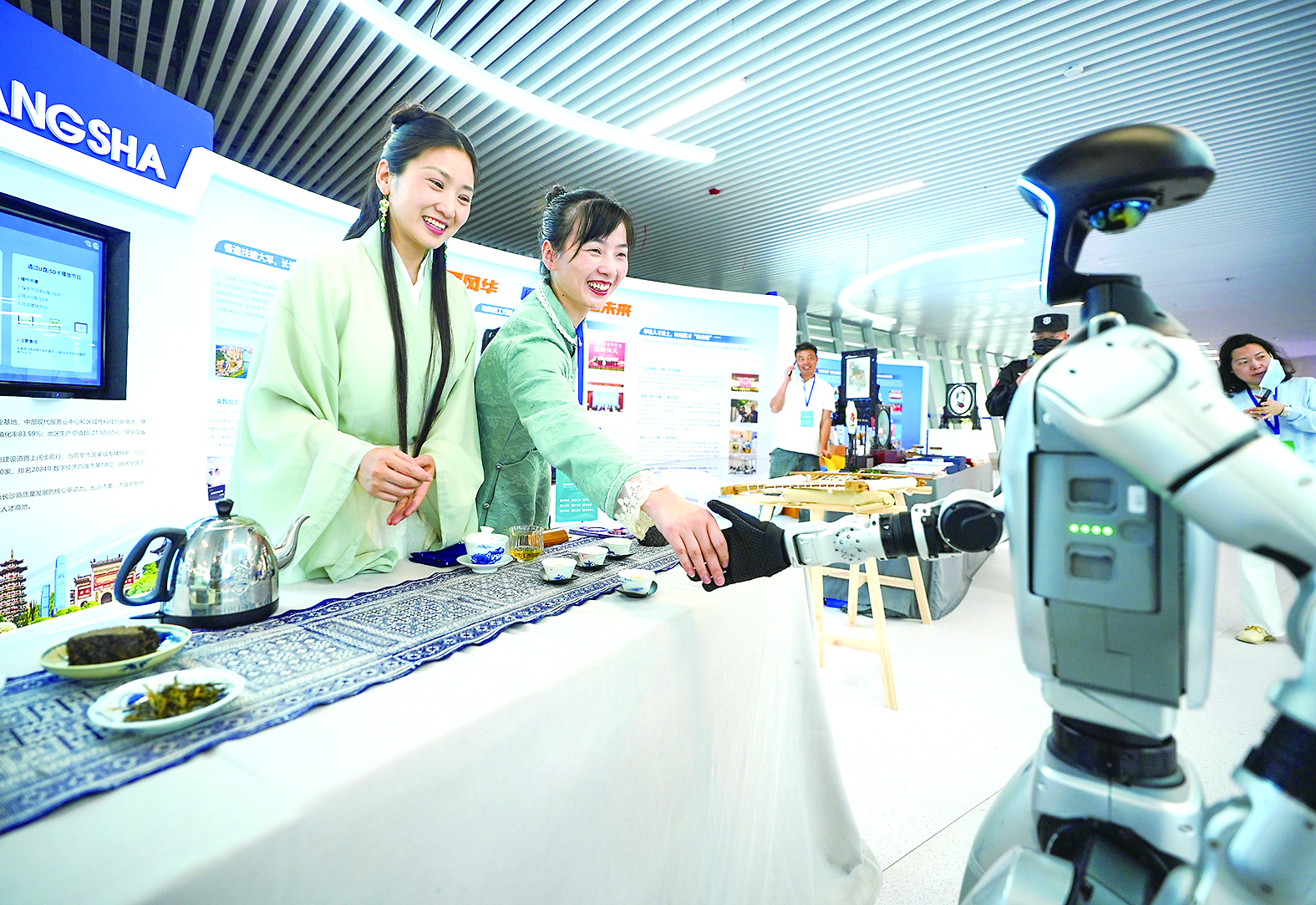职业技能大赛现场,古装美女和机器人的亲密接触。