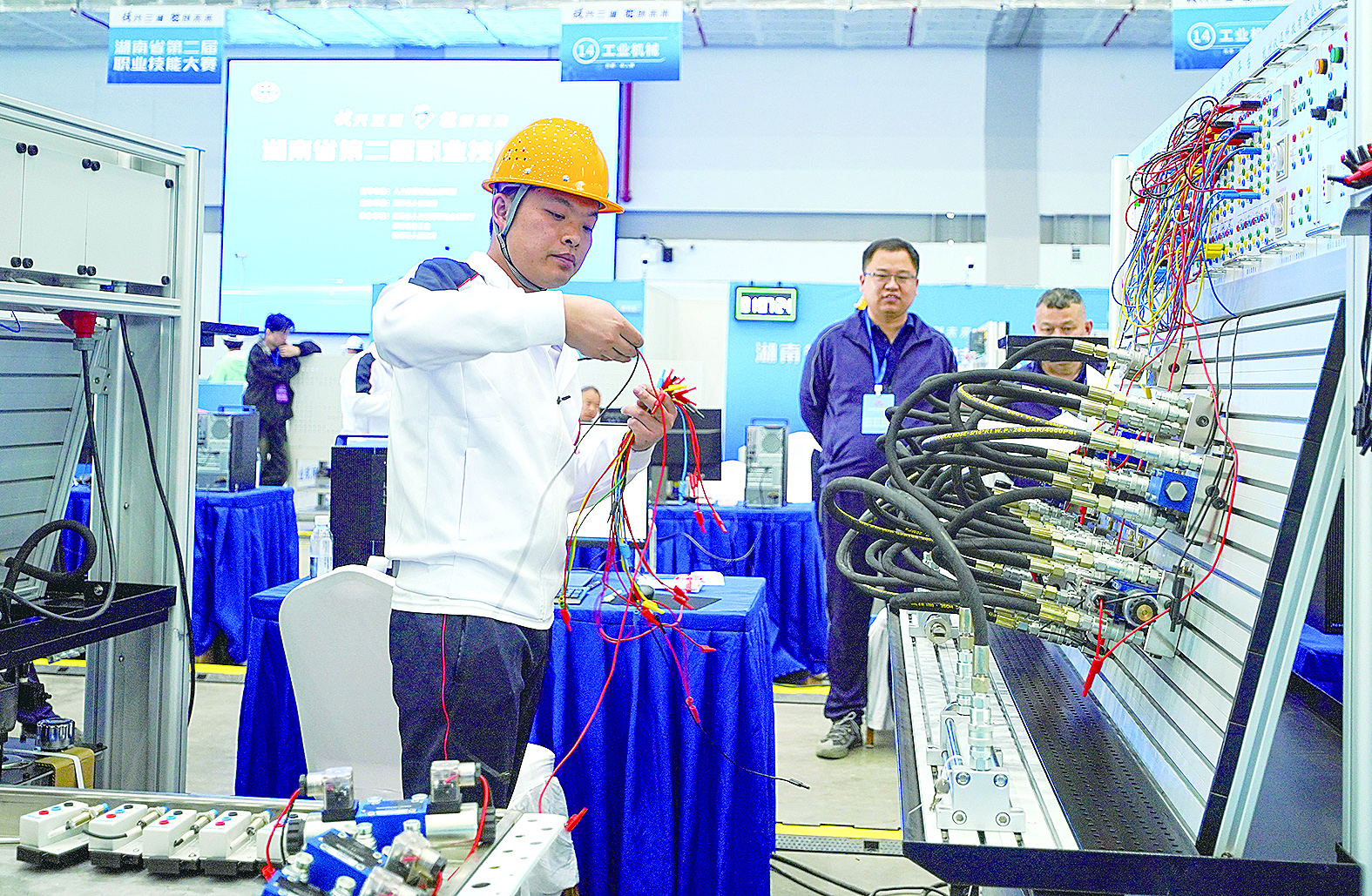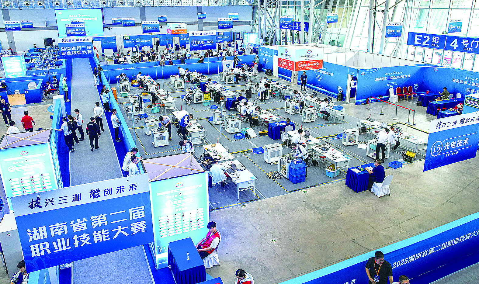 湘江之畔,巅峰对决。46个赛项涵盖制造与工程技术、信息与通信技术、创意艺术与时尚等领域。来自全省14个市州、7大行业的1187名技能精英亮绝活、展绝技。焊接赛场,弧光闪烁;机器人赛场,选手毫秒必争;装配钳工赛场,误差精度被控制在0.01毫米以内;中式烹调赛场,萝卜变成栩栩如生的“百鸟朝凤”;时装技术赛场,布匹成霓裳……最终,48名选手斩获金牌。