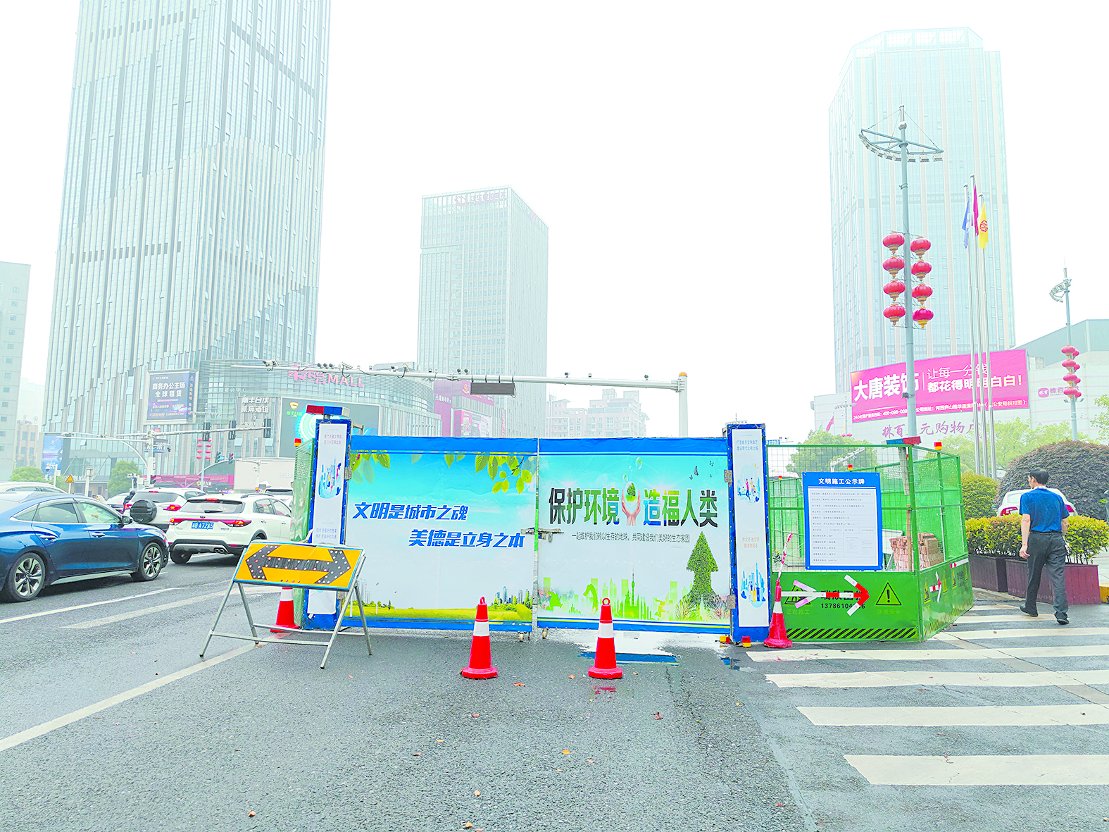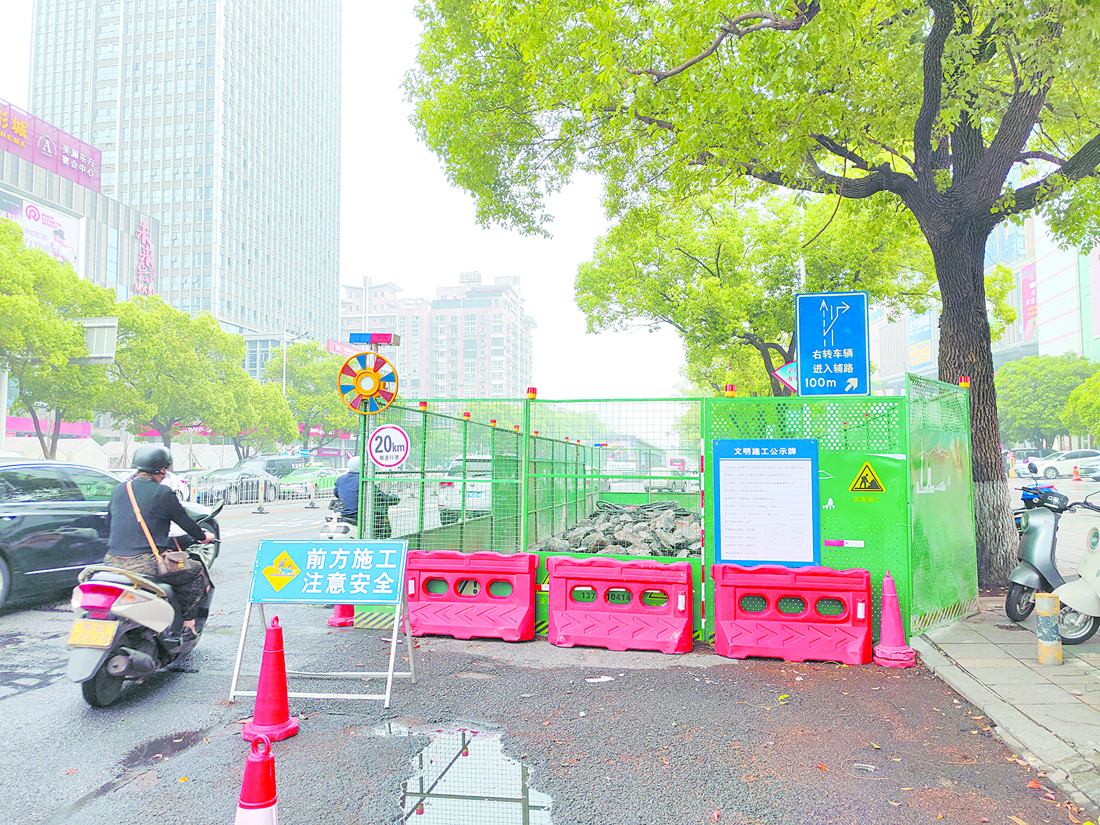 长江南路上的一处破占道施工工地。 记者/肖星平 摄