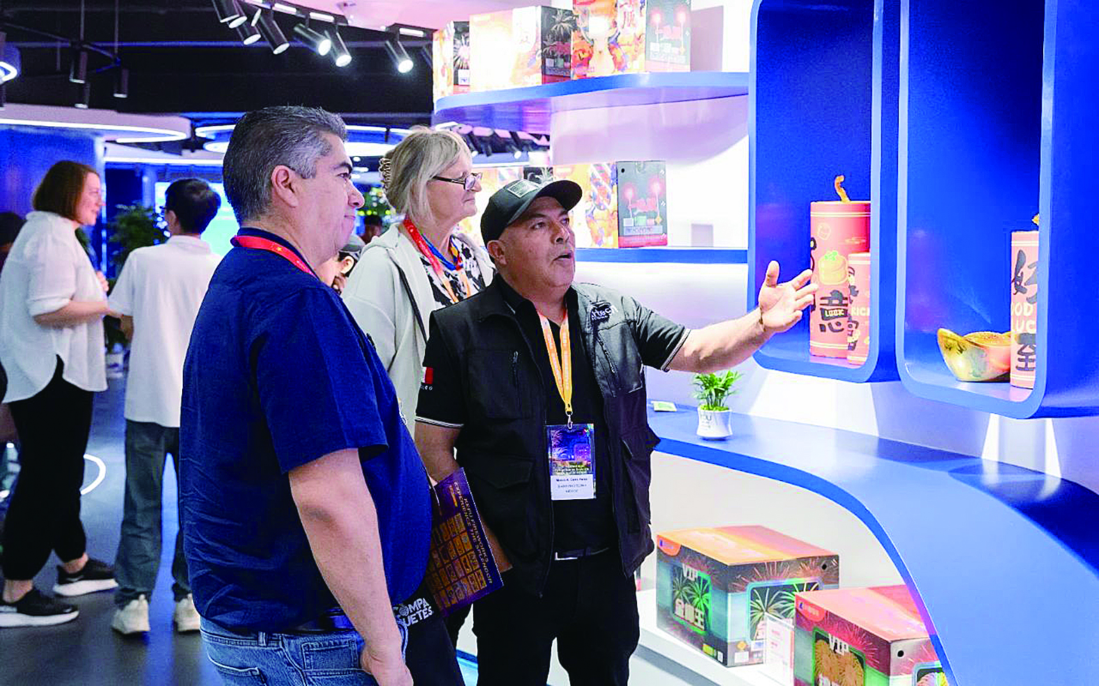 南凤烟花负责人向外宾们分享了其在安全管理、环保生产等方面的经验和做法。在该公司的安全生产指挥中心,烟花生产的各个环节,通过实时视频详细呈现在外宾们面前,引起一片赞叹。“不仅看到了包装精美的烟花产品,这背后还有很多细节,比如烟花制造的整个过程,非常令人惊叹。”来自墨西哥的Rafael Flores Medina感慨道:“通过安全指挥中心,我可以看到员工正在认真对待烟花制作的每一个环节,遵守每一个环节的安全协议,整个生产过程都运行良好,非常和谐。”