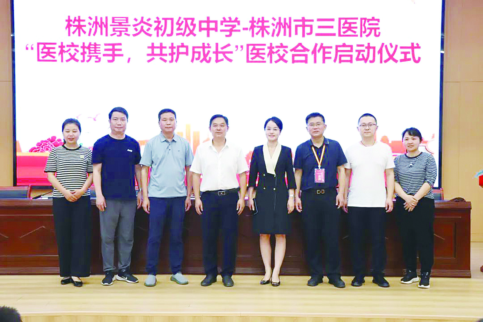 株洲日报讯(全媒体记者/董介 通讯员/谭路晴 李鹏) 4月21日,株洲市三医院与景炎初级中学正式签下“健康盟约”,荷塘区教育局、景炎初级中学、市三医院相关负责人共同为“医校共建基地”揭牌。