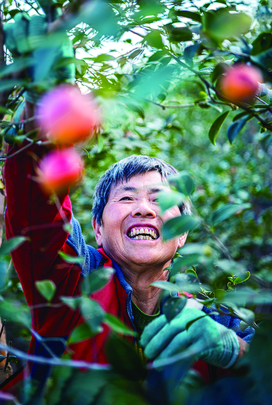 醴陵市金桥生态林农公司油茶基地,村民们喜采油茶果。 咏洲 摄