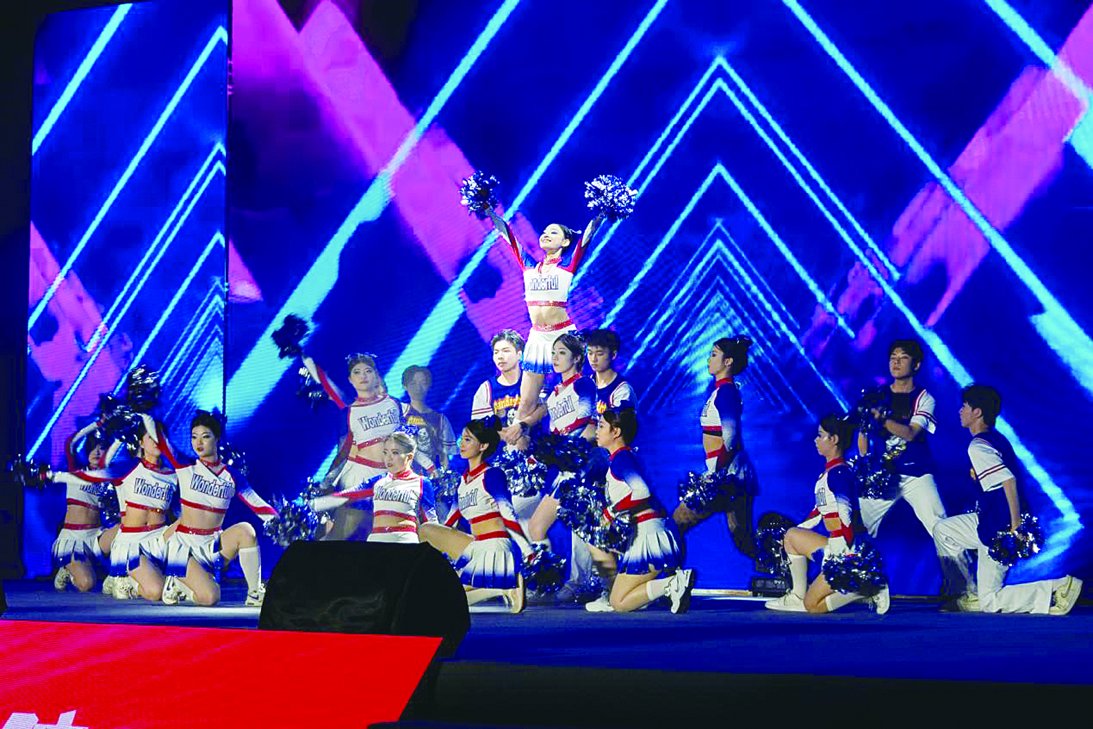 当晚,星空下的运动场化身美育大课堂,省歌舞剧院携精品节目与师生共赴艺术之约。开场歌舞《做最美的光》以璀璨灯光矩阵展现青春图景,民歌联唱《洞庭鱼米乡》再现“鱼跃稻香”的丰收图景,杂技《追光者》用高难度动作诠释工匠精神,“新国潮”《武家坡2021》以电子戏腔重构经典,惊艳亮相。当《你要跳舞吗》的电子音浪撞上《好想大声说爱你》的动感旋律,运动场秒变千人蹦迪现场。大学生艺术团合唱,将铁科青年学子的艺术风采表现得淋漓尽致,把晚会推向了高潮。《相亲相爱》旋律响起,全场师生手执星灯拼出巨幅“五四”光阵,夜空下跳动的光影恰似代代相传的精神火种,晚会完美落幕。