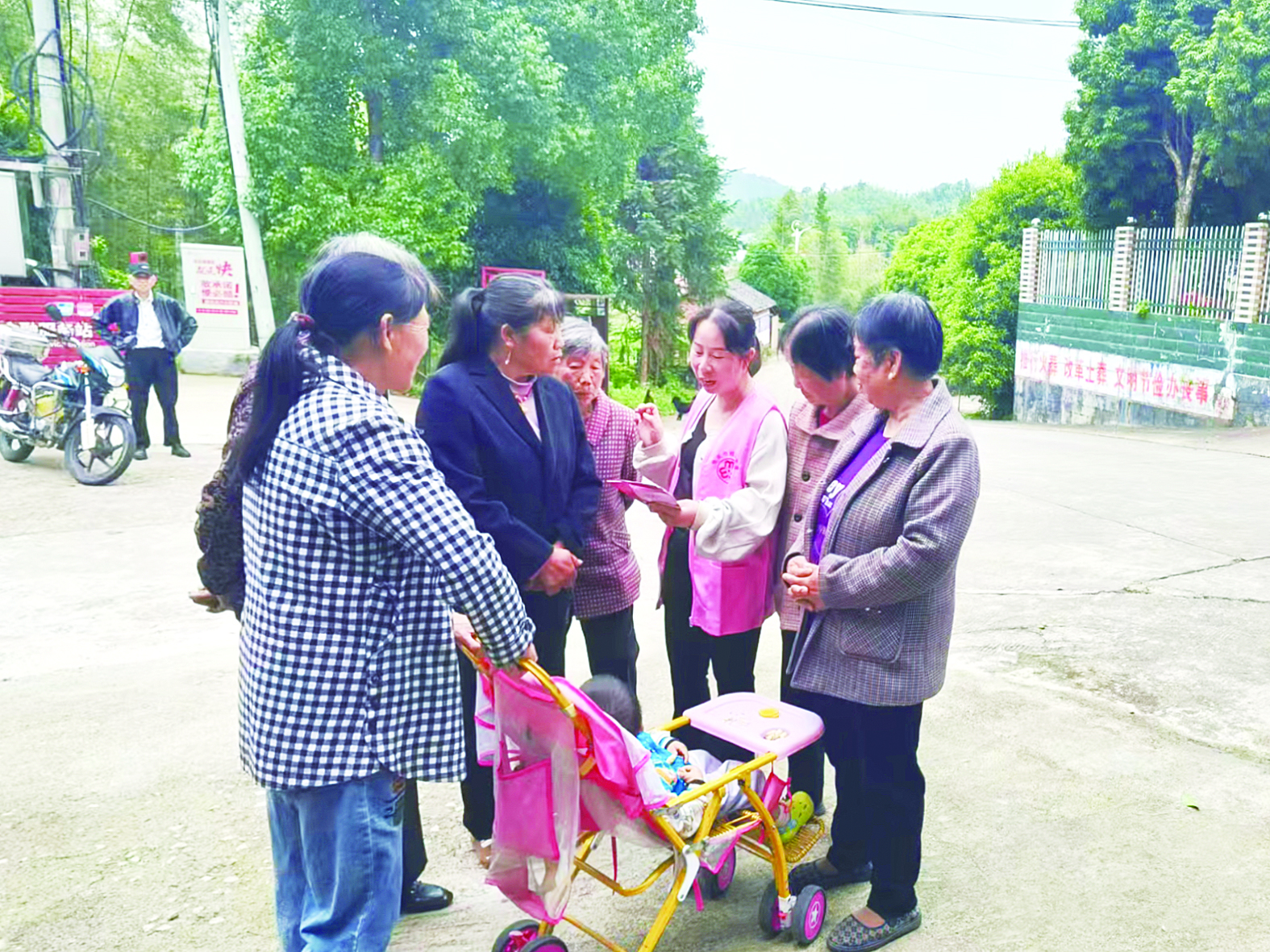 贺凯飞(右3)向村民宣传移风易俗的意义。 通讯员供图