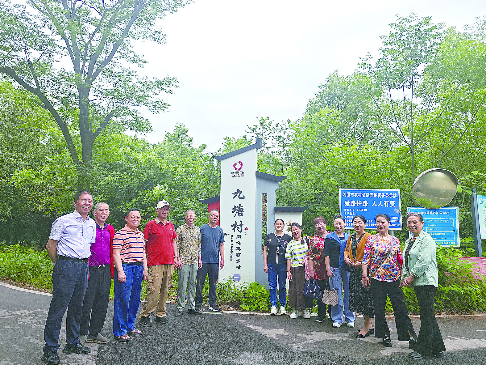 在九塘村党群服务中心,村党总支书记杨超向知青们详细介绍村里近年来的变化:通过土地流转发展特色种植产业,目前有140余亩湘莲种植基地、180余亩千金药园,“和美湘村”“长株潭三市界碑”等项目陆续实施。“如今的九塘村,水泥路通到了家家户户,茶园漫山飘香。这些变化,离不开你们当年打下的根基,更离不开你们始终如一的牵挂。”杨超说。