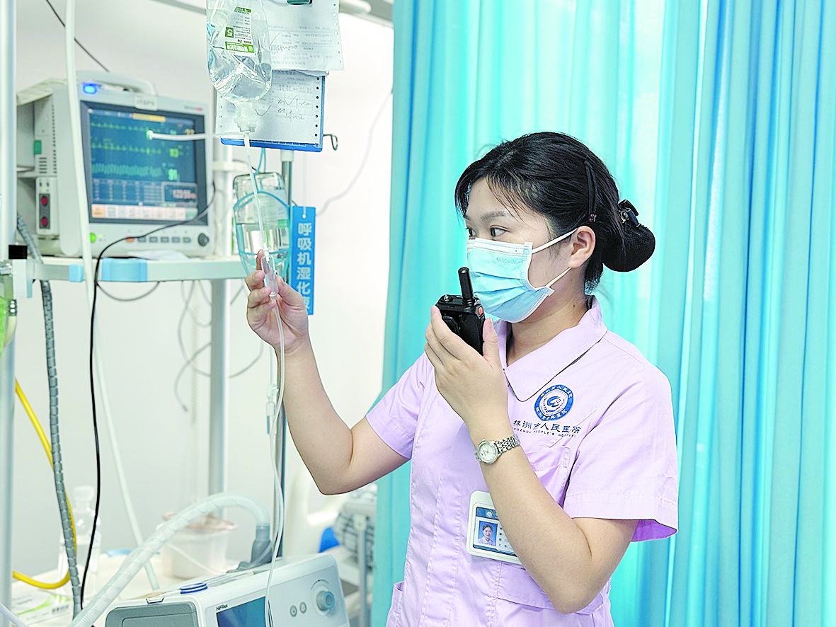 ▲为了保证护理效率,及时处理各种突发状况,这里的护士人手一台无线对讲机。