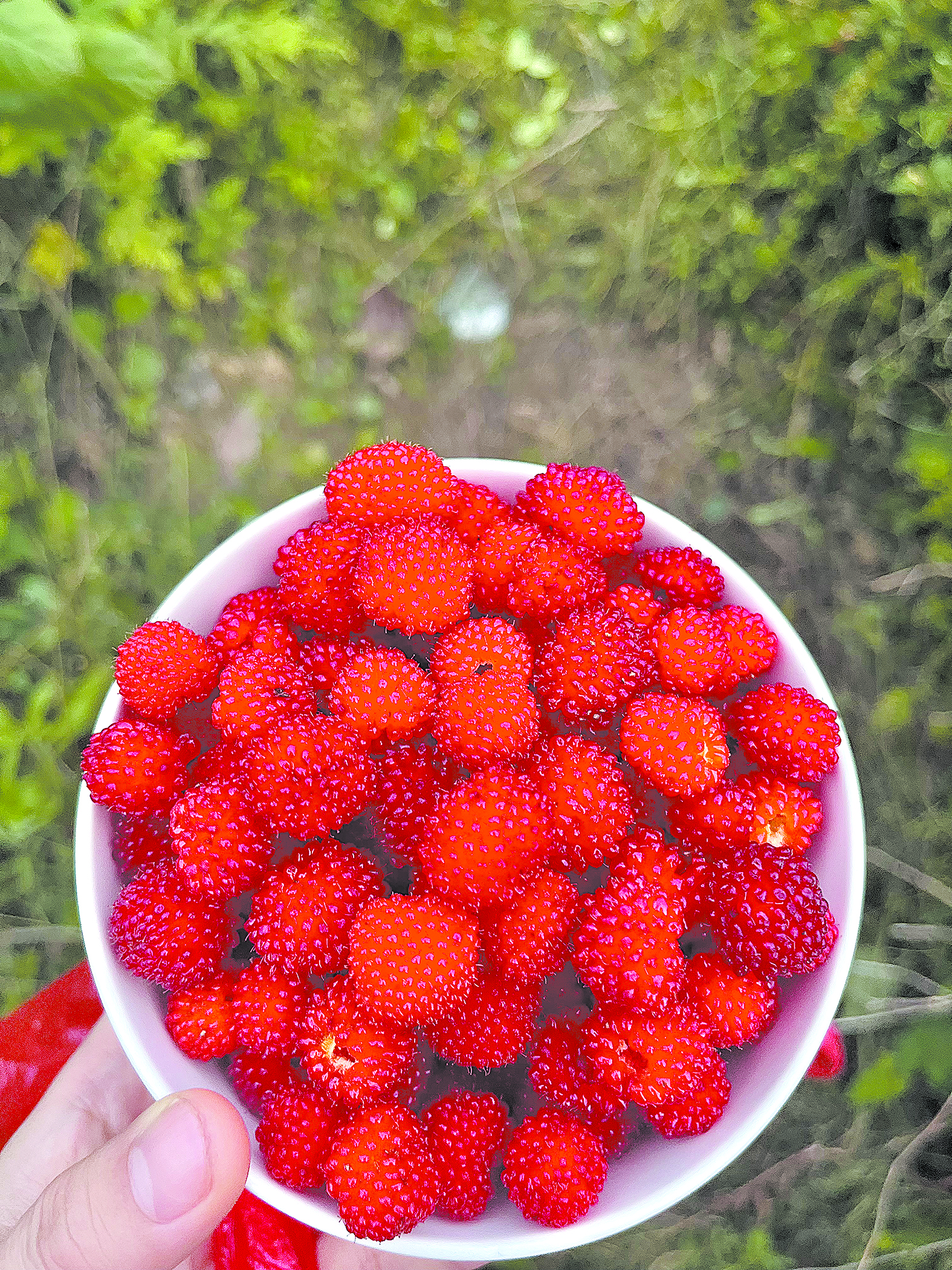 你无法想象带着一个很活泼的小孩,带着陶瓷杯或一个袋子摘野果子的场景,会有多么兴奋!小孩看到这种果子总会发出惊呼,就像看到了无数的小精灵一样,因为他们爱吃水果,爱吃甜的,也爱一切长得好看的小东西。在那一片绿色的草叶之间,鲜红小巧的果实点缀其中,就像宝石镶嵌在一片翠绿的背景之下。这是大自然的馈赠,也是造化的神奇,这是人造不出来的,是比冰淇淋汉堡包奶茶,比一些别的甜品更健康的食物,是得天地之灵气生长出来野果啊!