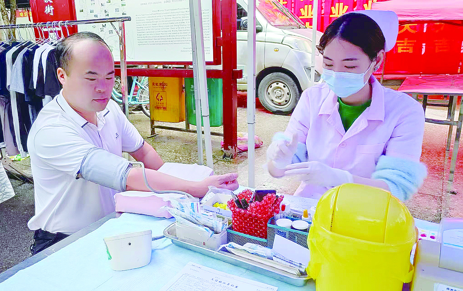 刘伊婷在乡村集市进行宣传和采血工作。 受访者供图