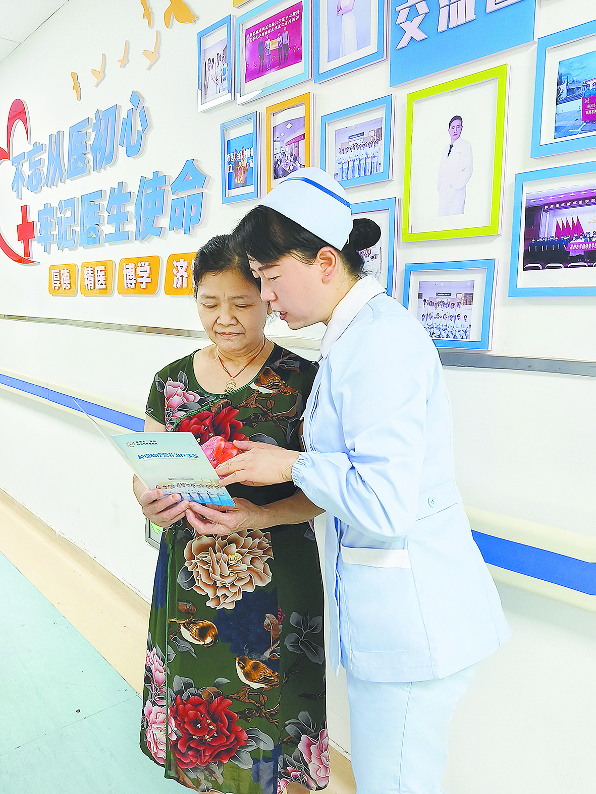 肿瘤一科护士长刘艳辉向患者宣教如何做好全程营养管理。 通讯员供图