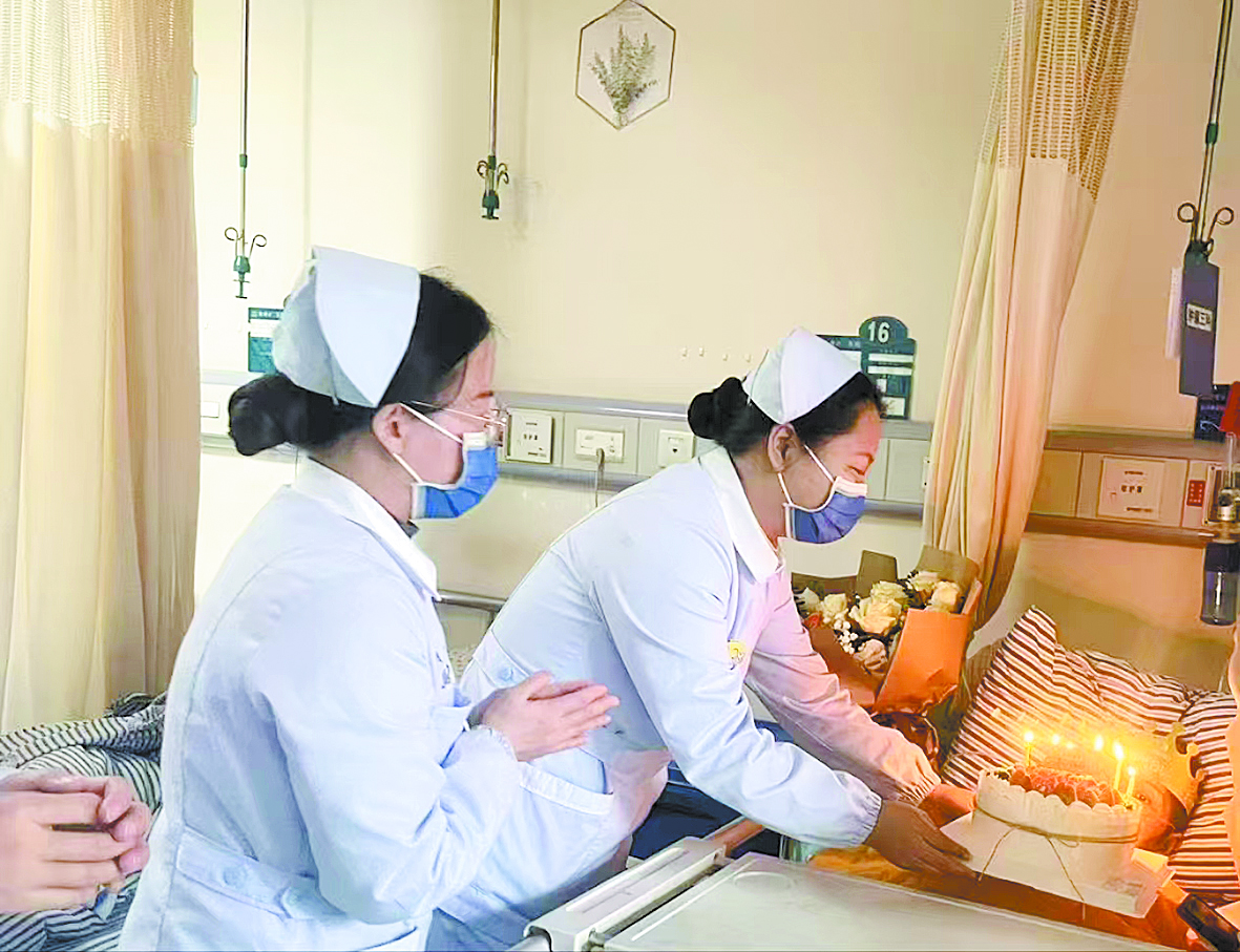 肿瘤三科护理团队陪淋巴瘤晚期患者度过最后一个生日。 通讯员供图