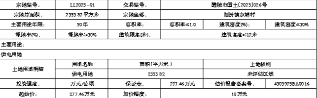LL2025-01:(一)竞得者应在成交确认书签订之日起10个工作日内签订出让合同。(二)土地成交价款由竞得者在出让合同签订之日起半年内全额缴清,逾期未缴部分,根据相关规定,征收违约金。(三)由醴陵市储备中心按现状条件交地,并承担因交地产生的相关法律责任。(四)须按醴陵市自然资源局出具的《大唐华银醴陵泗汾镇鸭塘50MW复合光伏发电项目用地性质认定蓝线图及规划条件》实施。
