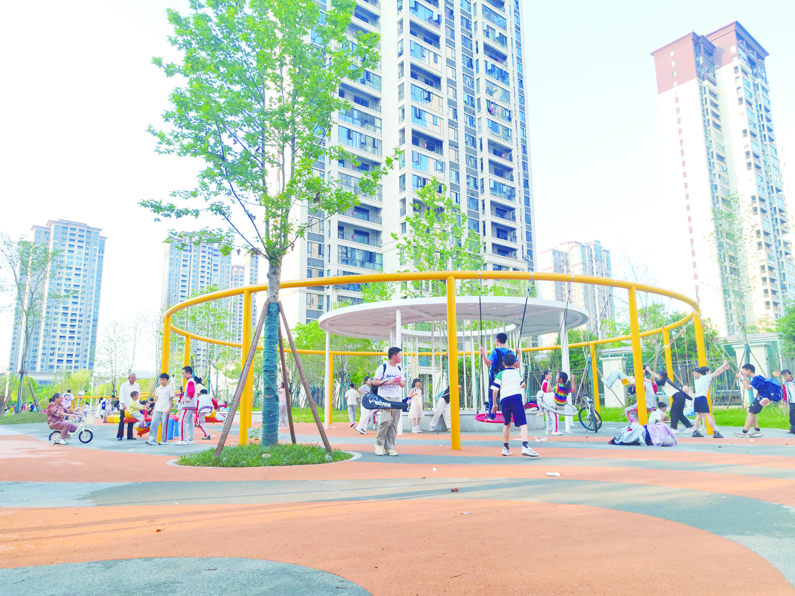 5月16日,在天元区新建的规划150路微公园内,孩子们正在玩耍。 记者/肖星平 摄