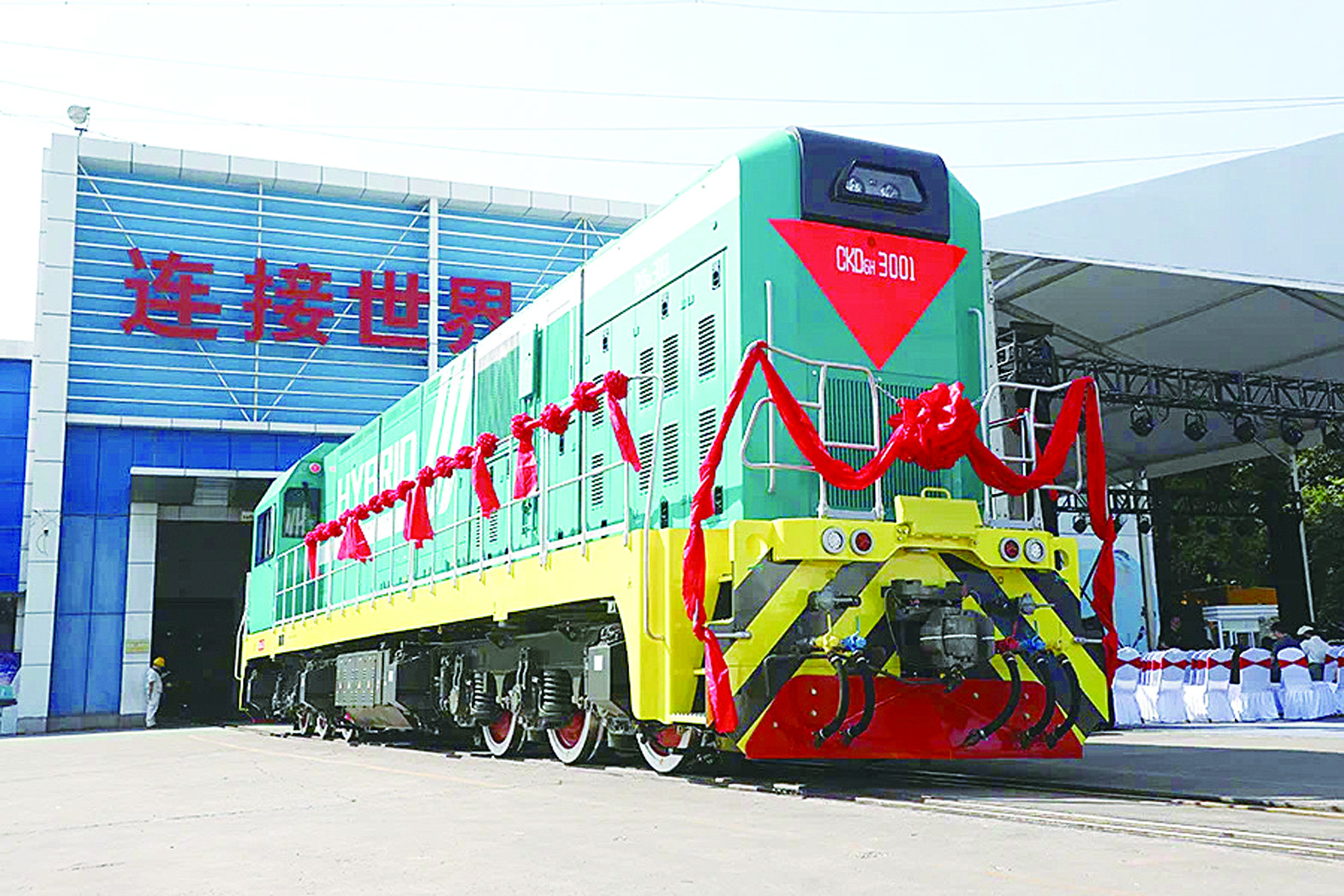 CKD6H型机车基于中国中车系列化标准新能源机车平台打造,专为中亚极寒环境优化设计,采用“内燃发动机+动力电池”混合动力,集数字化、智能化、绿色化于一体,具有“绿色、安全、智能、经济、可靠”五大核心优势。