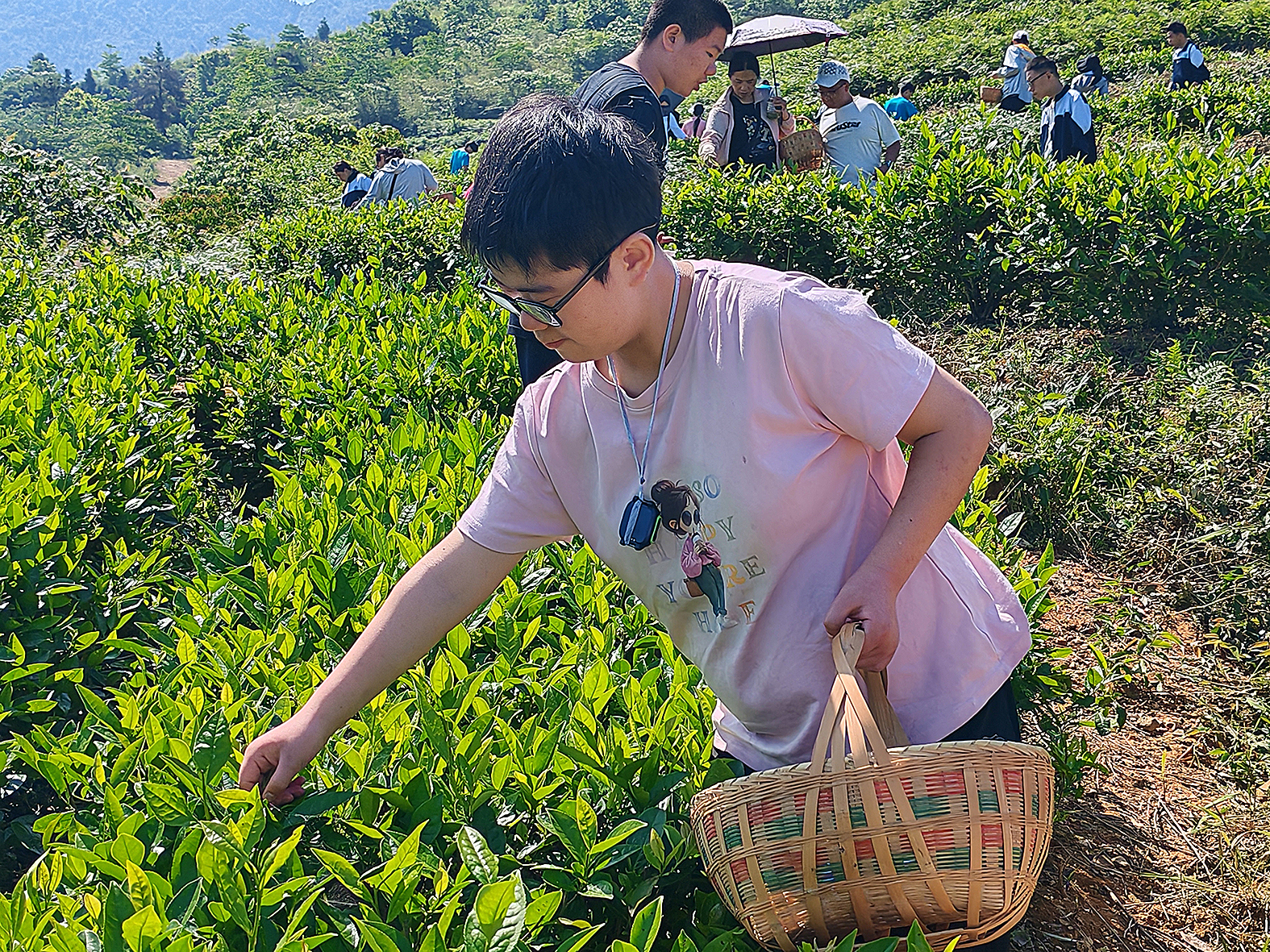 尽管气温很高,但穿梭在茶山的学生们却忙得不亦乐乎。他们跟随老师和专业人员采摘鲜嫩的茶叶,然后小心地收集起来。