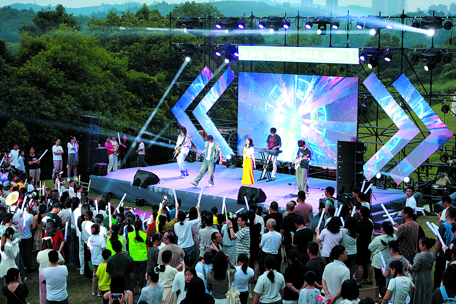 “不是演唱会去不起,而是草坪音乐节更有性价比。”5月24日,渌口区“燃动青春·声耀未来”青春音乐节在渌口镇青龙湾草坪举行。现场,专业乐队、青年歌手轮番献唱,观众可以一边欣赏精彩节目,一边在光影帐篷内休闲谈天,歌词接龙等互动环节气氛热烈。当天,现场还设置了特色集市以及漆扇、扎染等非遗手作区,吸引了众多年轻游客前来游玩。