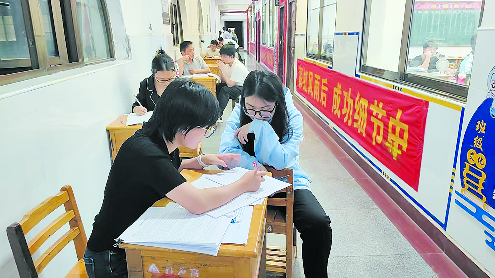 每晚7:00开始,全体高三教师自发组成“走廊答疑队”,在教室外支起移动讲台,为晚自习学生提供“零距离”辅导。这支被学生称为“夜灯守望者”的队伍,与总务处精心设计的“高考能量补给站”共同编织成校园最温暖的助考图景。