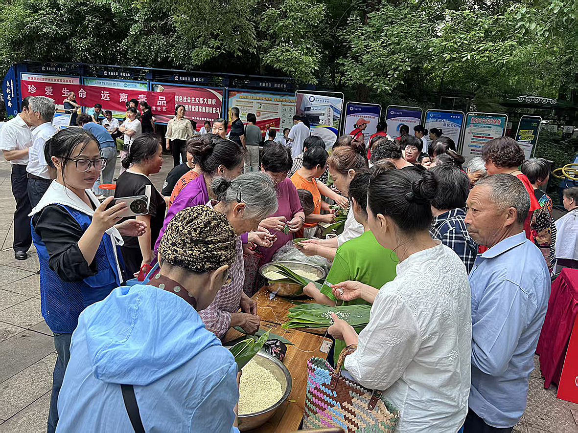 活动现场,热闹非凡,不仅有包粽子比赛、端午知识有奖问答、文艺演出、健康体检等活动,还有磨刀、小家电维修、免费理发等便民服务,通过“文化+服务”模式,既传承端午习俗,又强化社区服务功能,生动诠释“幸福邻里”的社区理念。