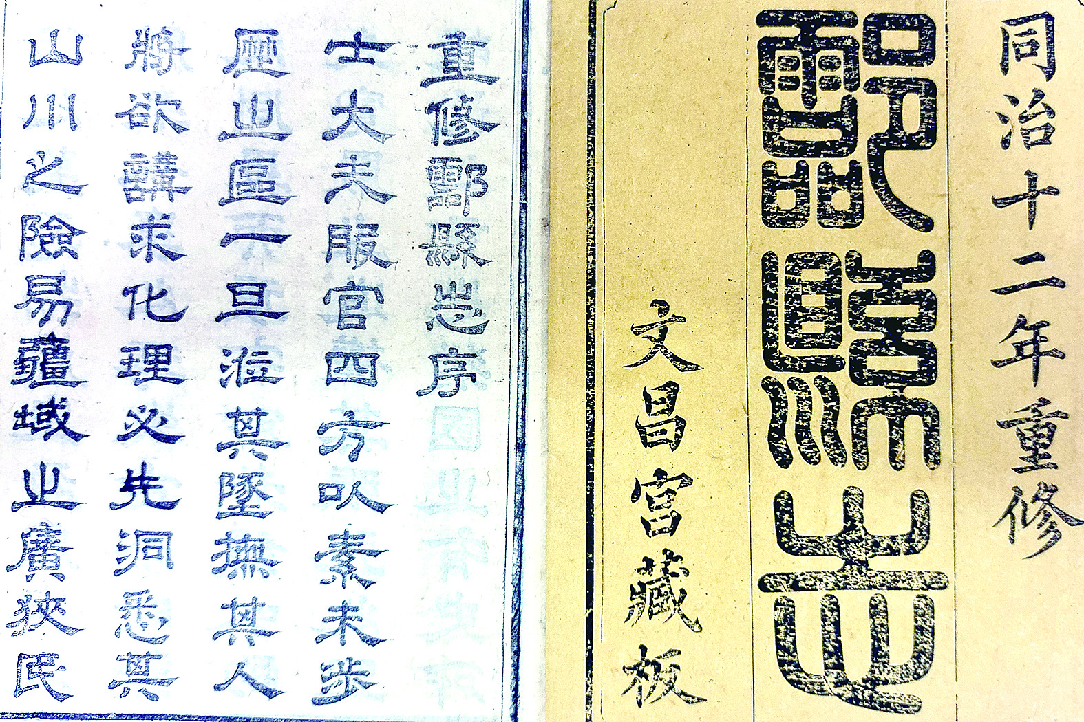 同治十二年版《酃县志》封面及主修唐荣帮志序首页