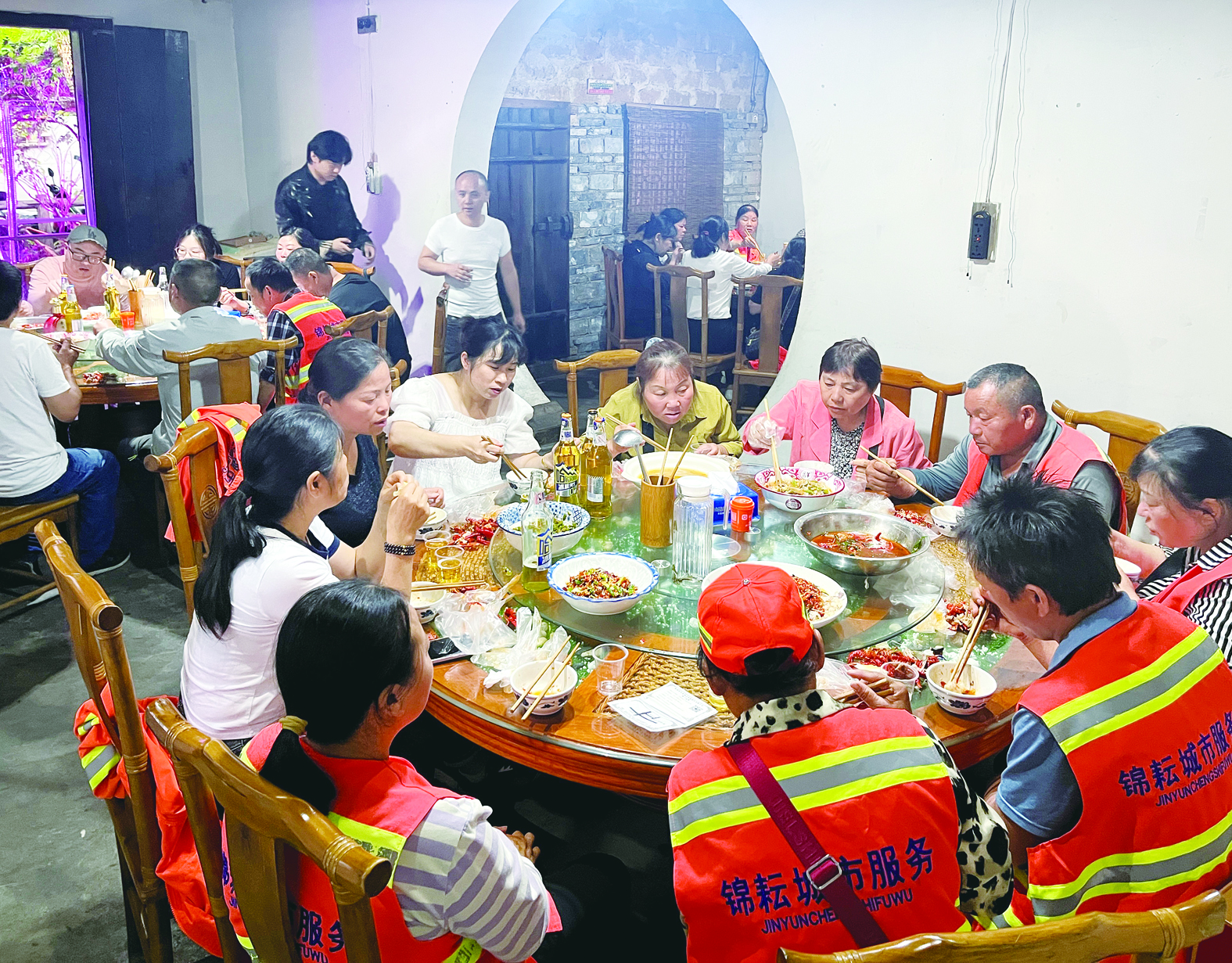 5月27日傍晚,天元区的40多名环卫工人在“李家外公外婆”餐饮店的邀请下,来到该餐饮店共聚晚餐。市李家外公外婆餐饮有限公司负责人彭双喜介绍,这是该店第5次在端午节来临之际宴请环卫工人,表达对一线环卫工人的关爱和端午节的祝福。希望爱心行动能呼吁更多身边人,尊重环卫工人的劳动成果,共同创造城市的美好环境。