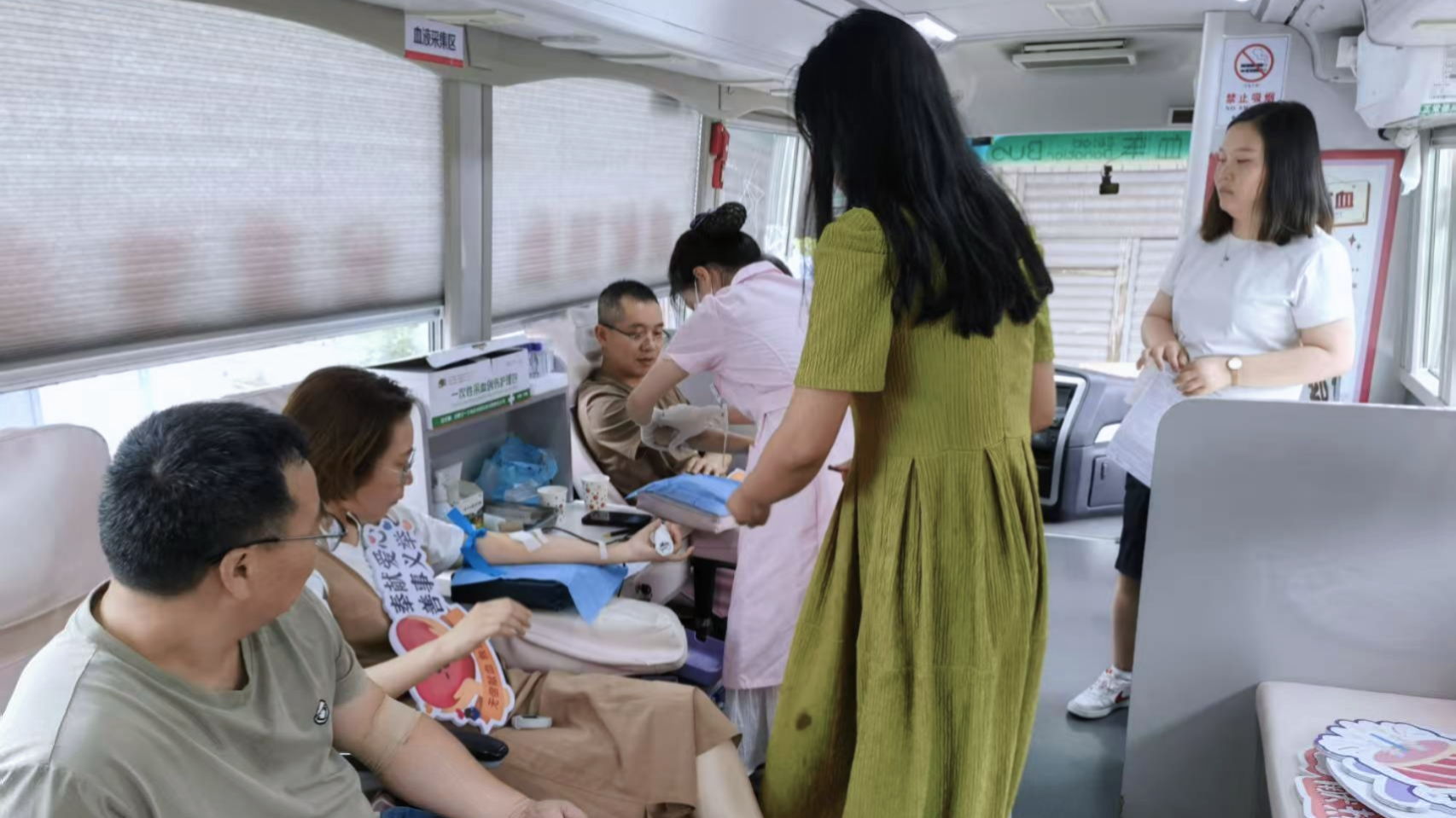 晨光熹微中,在工作人员的引导下,教师们有序完成登记、血压测量、健康筛查等流程。登上献血车的身影里,既有连续多年献血的“老将”,何斌、刘向辉等教师用坚持诠释担当;党总支书记刘文武带头示范,引领奉献风尚;泗汾中学刘维柱老师更是以第10次献血,践行着“绵薄之力,一臂之忱”的誓言。当殷红的热血缓缓流入储血袋,老师们眼角绽放的笑意,为初夏的校园染上了一层生命的温暖。