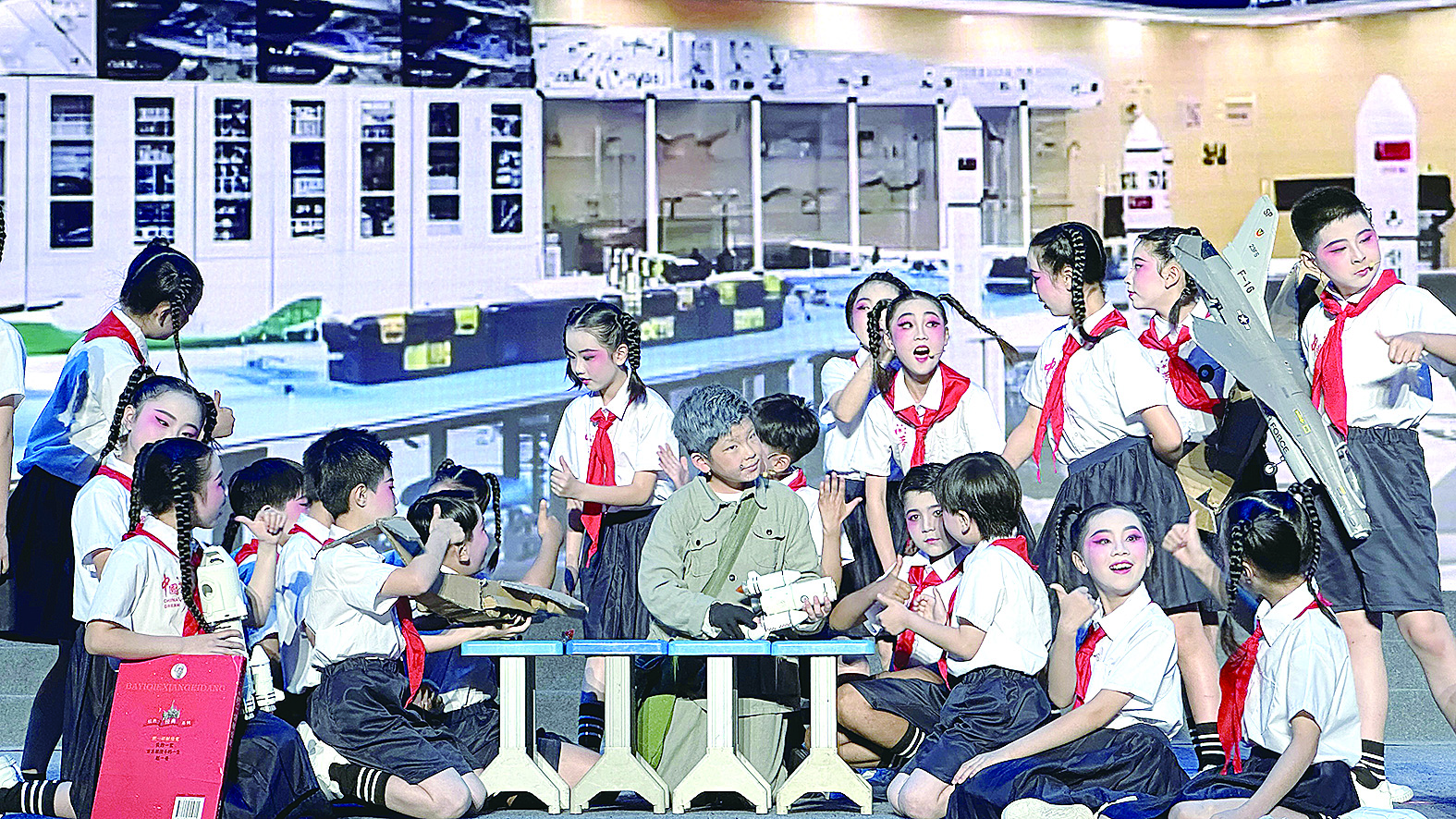 吴运铎“穿越”时光,为孩子们讲述航天梦。 记者/戴凛 摄