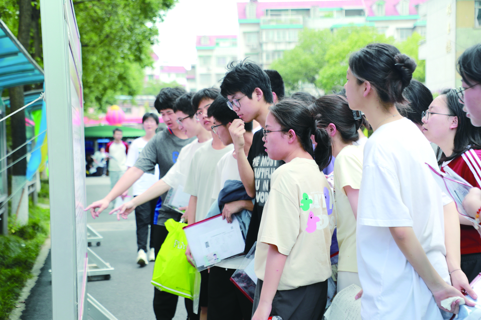 6月6日,考生在市四中“踩点”,查询考场信息。 记者/谢嘉 通讯员/谢花荔 摄