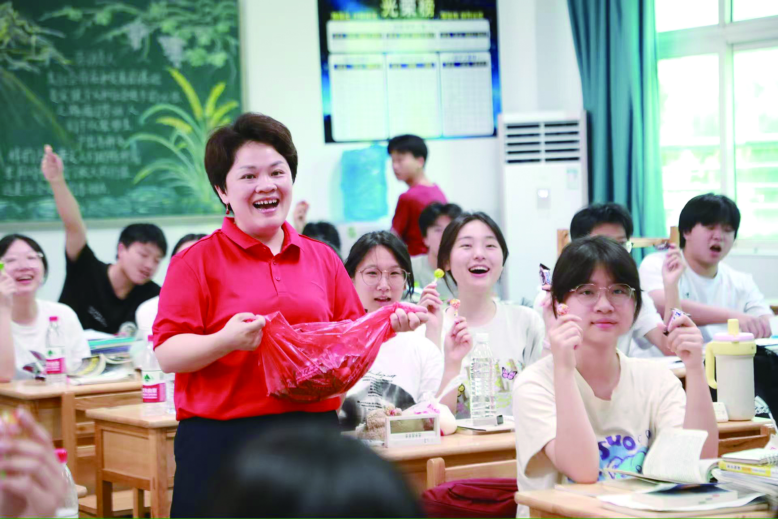 老师用棒棒糖送上祝福。记者/谢嘉 通讯员/谢花荔 摄