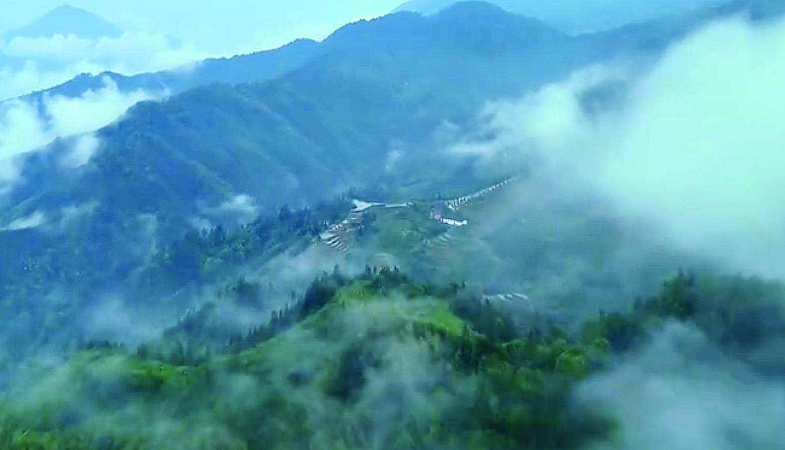 近日,一场降雨过后,炎陵县策源乡出现云海景观。山峰、村庄、梯田、林道在云雾中忽隐忽现,宛如一幅淡雅的水墨画卷。
