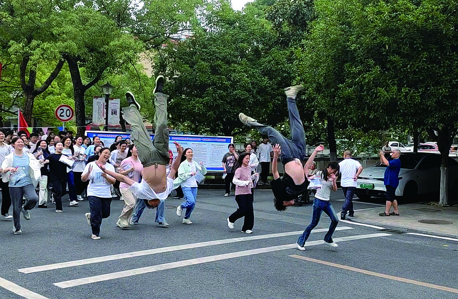 6月9日下午,株洲市八中高考考点,该校艺术生以漂亮的空翻冲出考场。