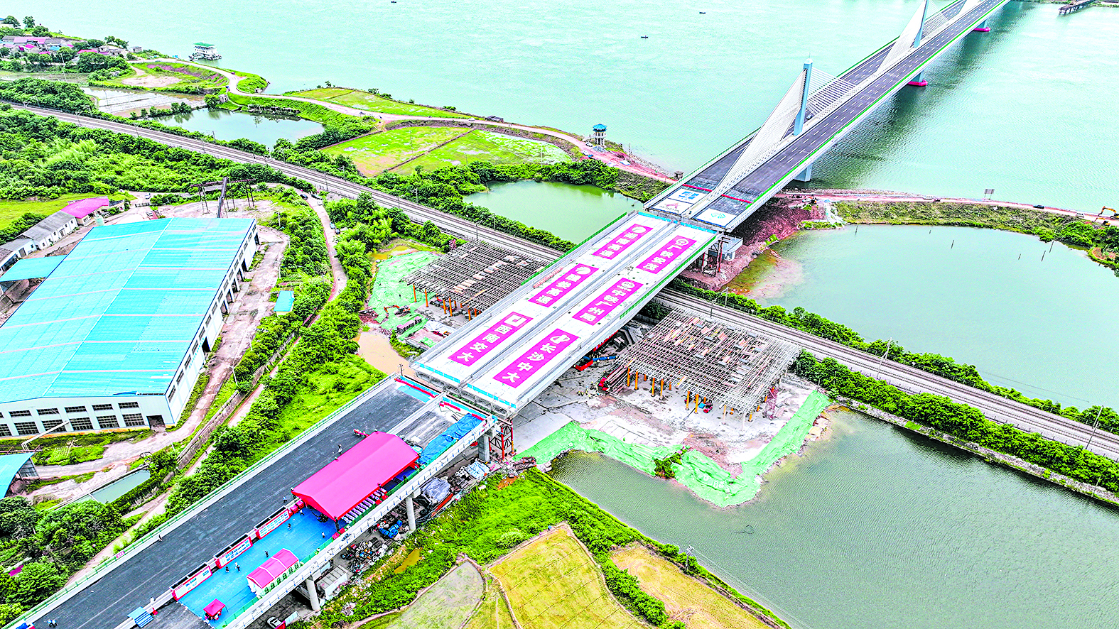 醴娄高速湘江特大桥上跨京广铁路转体桥成功实现毫米级精准对接。