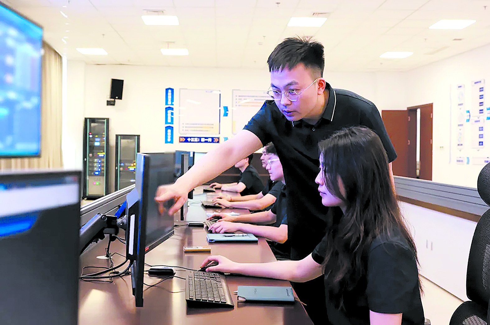 指着参数,刘渊正与团队成员进行讨论。 通讯员 供图