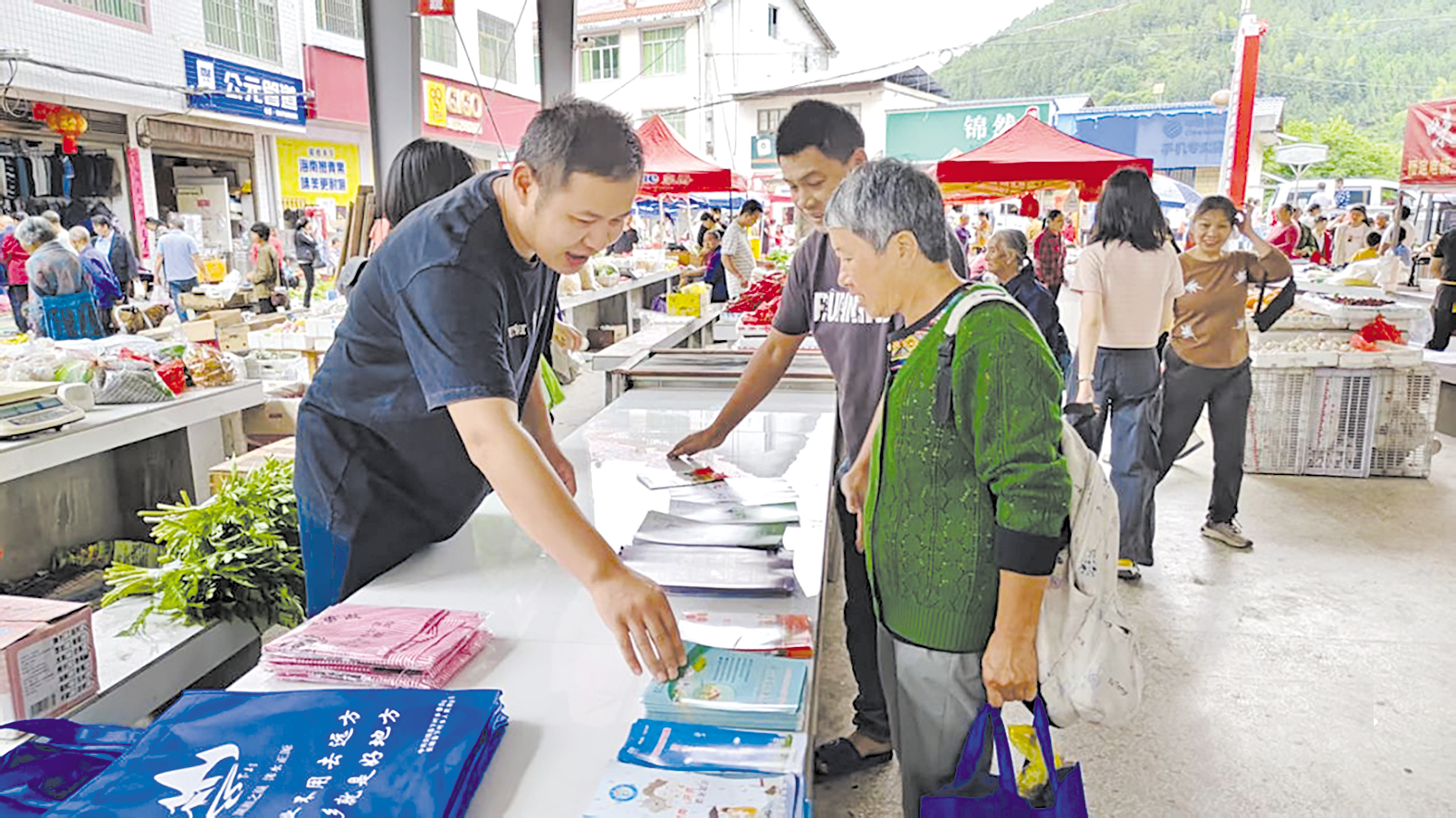 6月19日,炎陵县下村乡赶集日,当地政府组织志愿者来到墟场,开展移风易俗及安全生产主题宣传活动,通过设立咨询台、发放宣传手册、现场讲解等形式,向群众宣传移风易俗的意义,征求群众对婚丧嫁娶标准的意见与建议,共同抵制高价彩礼、铺张浪费等不良风气。同时,讲解防火防溺水、安全用电用气等知识,提高群众安全防范意识。株洲日报通讯员/炎荣梅 摄