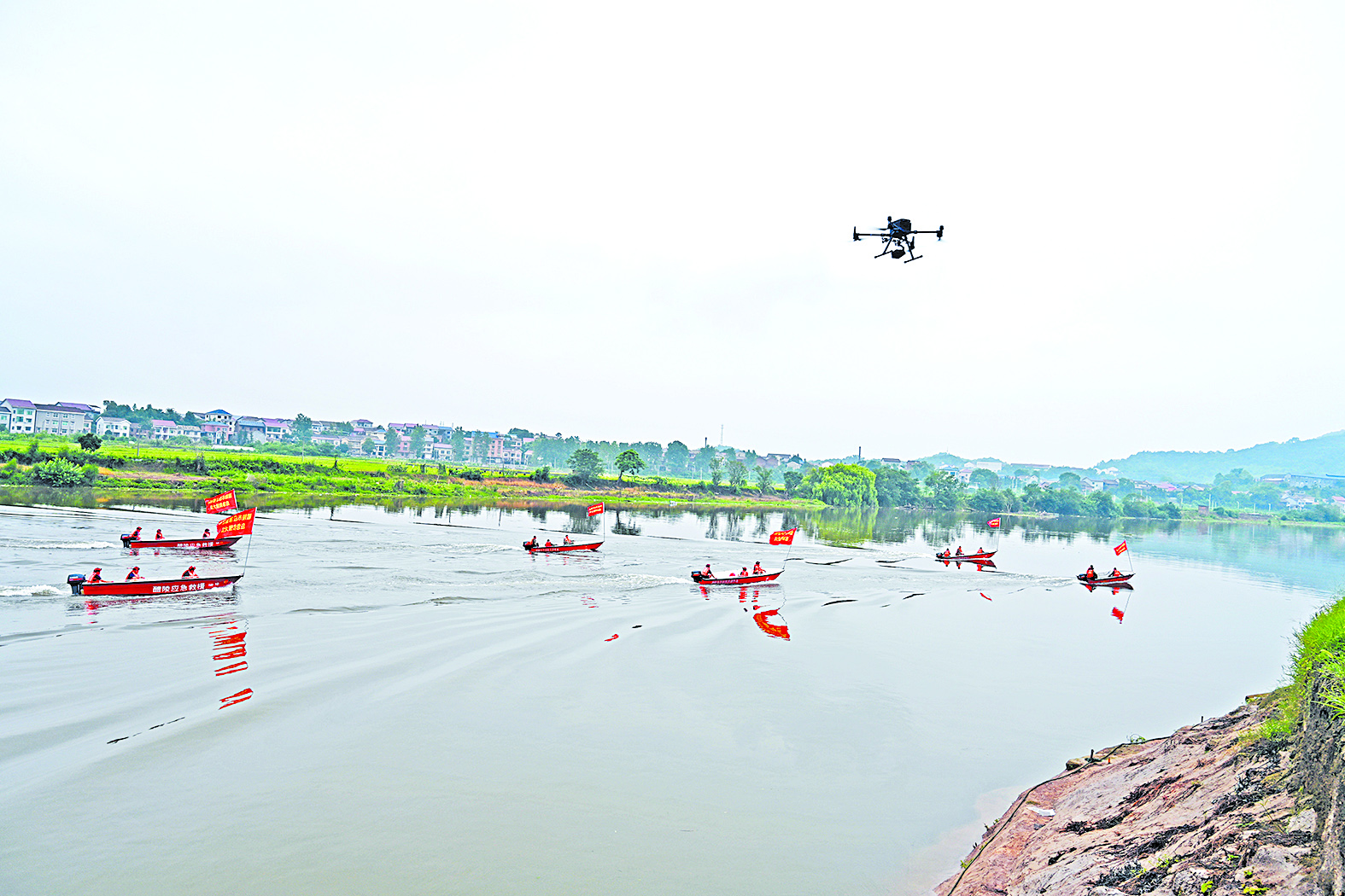 株洲日报讯(全媒体记者/陈洲平 通讯员/段智勤 林超) 6月24日,茶陵县人武部组织4个民兵应急排,在洣水流域开展抗洪抢险综合演练。