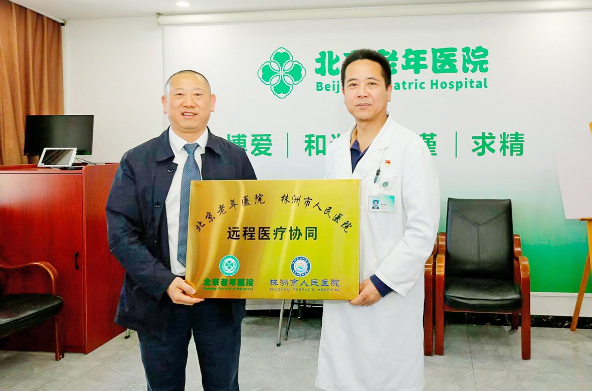 经过不断努力,市人民医院老年病科跻身省级临床重点专科,老年心血管内科为湖南省市州级省临床重点专科,老年骨科为湖南省市州级省临床重点专科建设项目。为擦亮品牌,拉长长板,今年4月,市人民医院领导及专家赴京与北京老年医院达成远程医疗协作协议,北京老年医院正式授予市人民医院“远程医疗协同单位”的牌匾,京株两地老年医学深度合作迈入新阶段。
