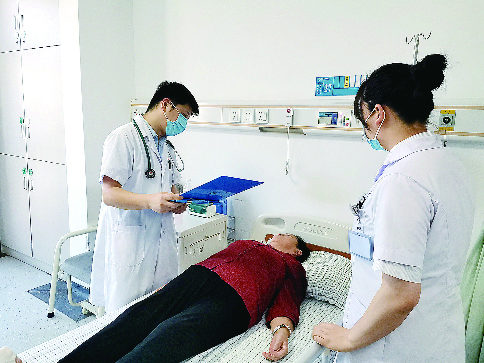 医生为高血压患者检查。记者/董介 摄