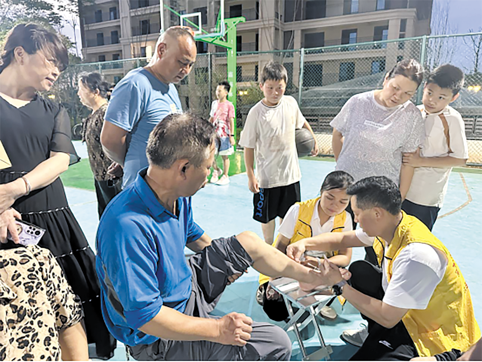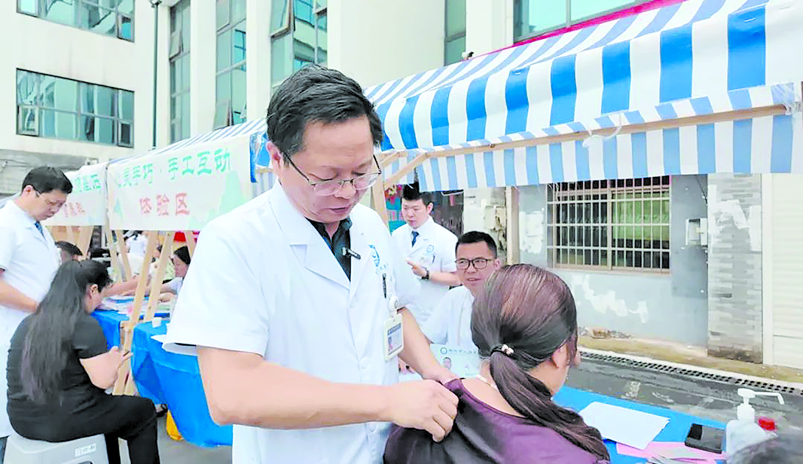 在荷塘区金山街道太阳村,株洲市人民医院联合金山派出所和太阳村举办了一场主题为“健康惠民、反诈同行”的“中医集市”。该院派出11个重点科室的医护团队,为村民免费量血压、提供疾病咨询和个性化建议。康复理疗科带来了针灸、三伏贴等特色体验。活动还设置了趣味环节:在“识百草,爱中医”互动区,村民通过辨识中药材赢取健康礼品;在茶饮区,可免费品尝养生茶,体验中药熏蒸眼部SPA、清热除湿足浴。此外,现场还有反诈咨询台,派出所民警和志愿者们结合真实案例,给村民尤其是老人和青少年剖析诈骗手法,传授“三不”等防范要点。