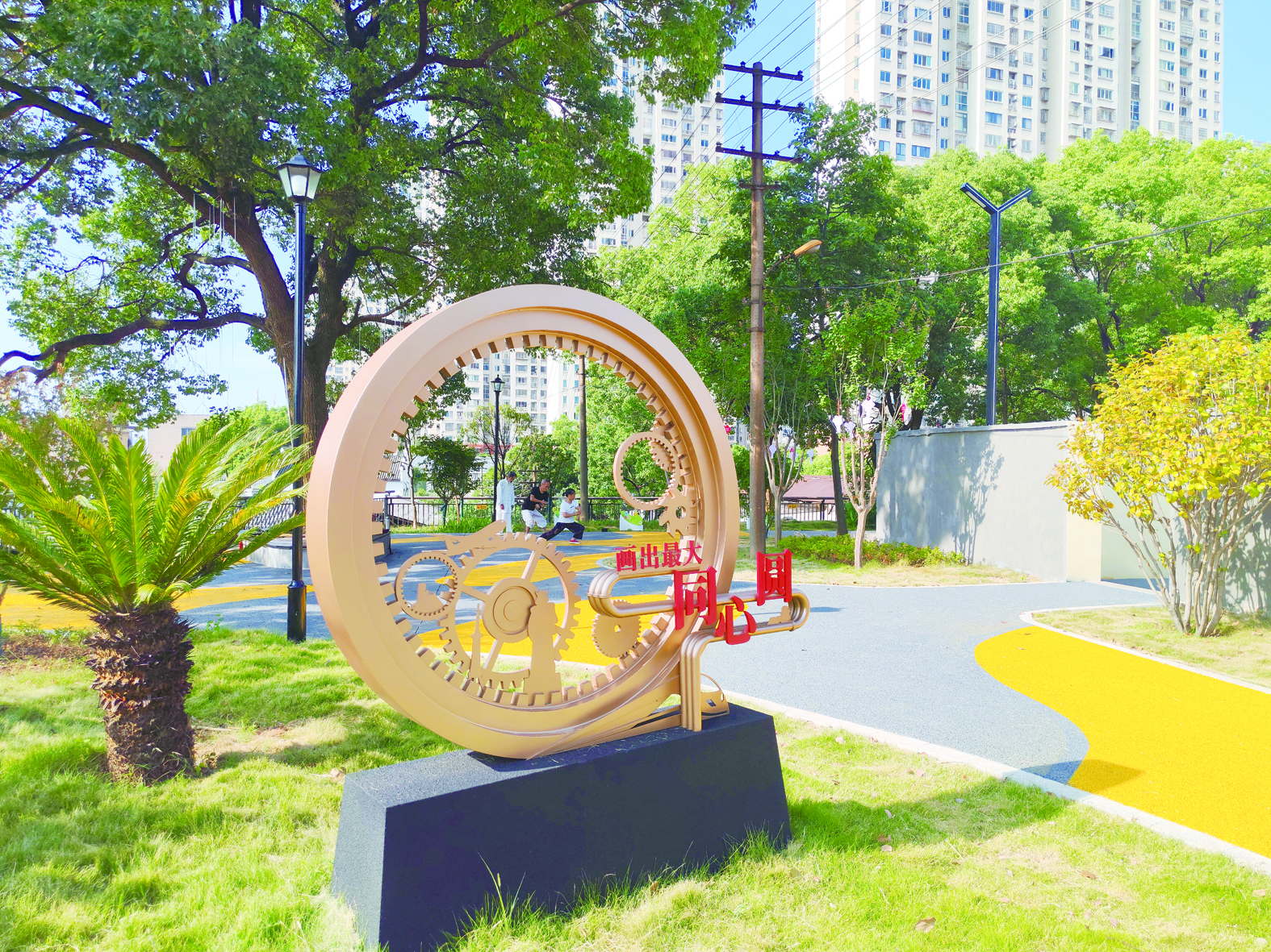 公园大门保留着原自来水厂的门头,斑驳的“株洲市新市自来水有限公司”“重点要害部位”等牌匾见证着工业记忆。园内既有新增的雕塑、滑梯、木凳、健身器材、文化标语牌等设施,又完整保留了水塔、滤水池等工业遗存,形成集健身娱乐、儿童乐园、工业文化展示、居民议事于一体的复合空间。建设过程中,各方人士纷纷献计献策、出资出物,让这座微公园既成为爱国主义教育基地,又变成传播水净化知识的科普课堂。