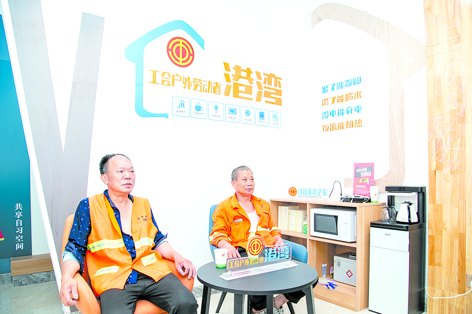 环卫工人在工会驿站歇息(资料图)。 记者/何春林 摄