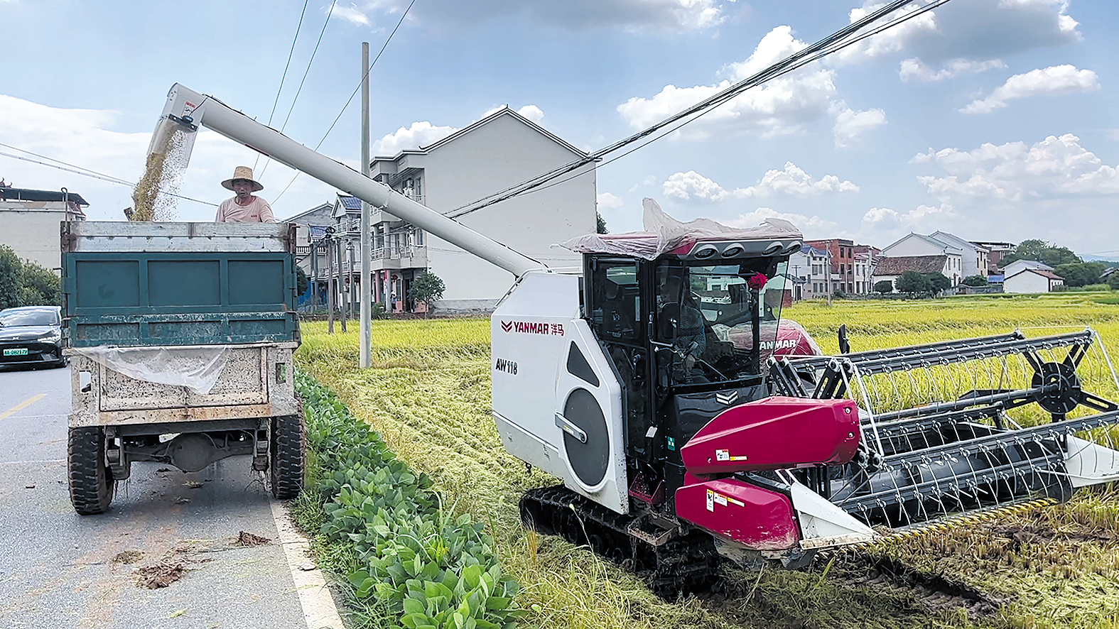 小暑时节,早稻进入收割期,攸县28.1万亩早稻陆续开镰,当地抢抓晴好天气,调集2000余台农机全力推进“双抢”作业。在攸县新市镇,广袤的田野里一片片黄澄澄的稻谷,收割机在翻涌的稻浪中来回穿梭,高效完成切割、脱粒等作业,一派繁忙景象。“今年天气给力,种了1100亩早稻,亩产量达到550公斤,比去年高了不少。”当地种粮大户王爱国介绍。