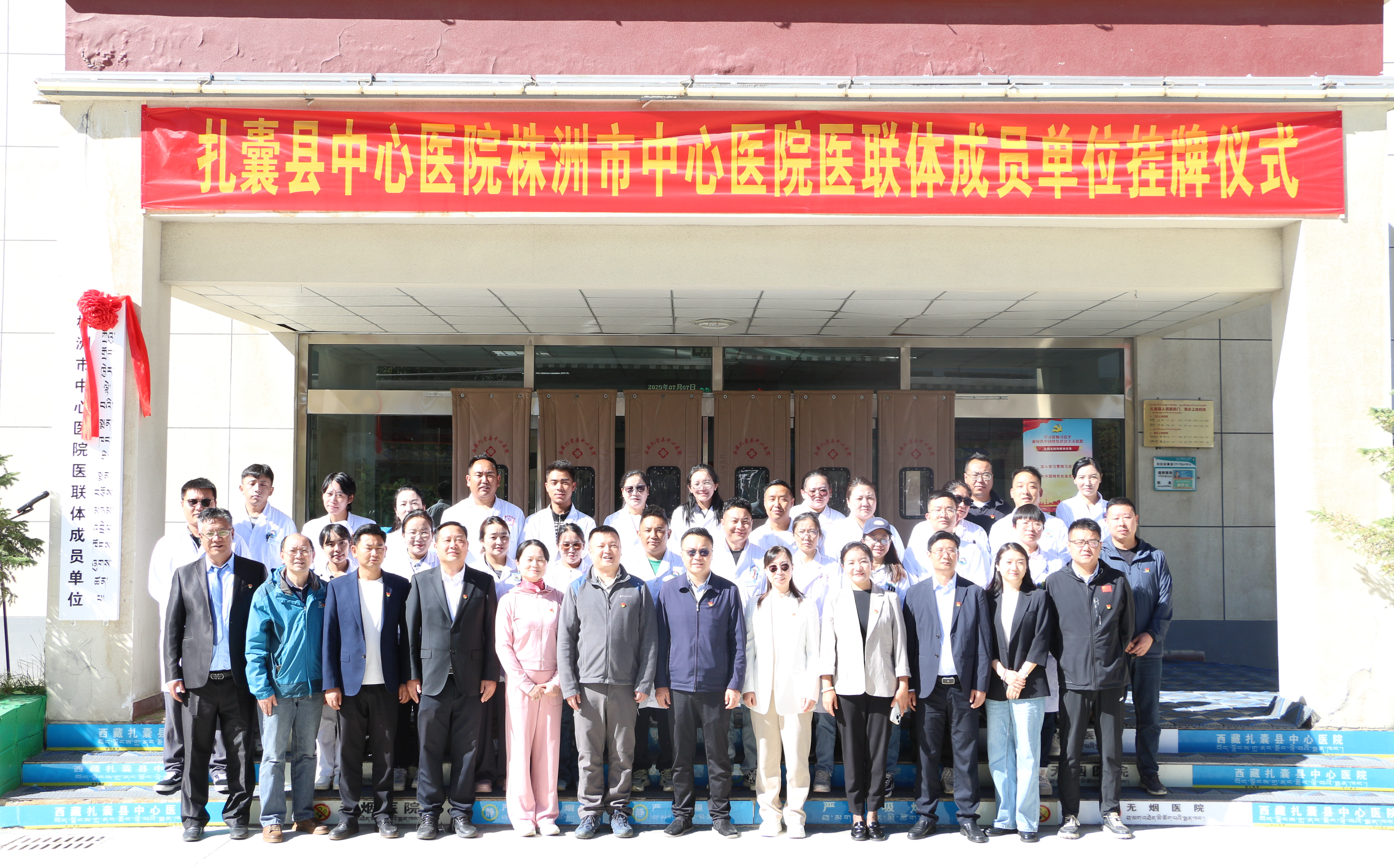 挂牌仪式在扎囊县中心医院举行。株洲市卫生健康委及市中心医院相关负责人,扎囊县委、县政府相关领导,以及县卫健委、县中心医院等相关单位负责人和医务人员参加仪式。双方代表签署了紧密型医联体协议书,扎囊县委常务副书记、常务副县长、株洲市第十批援藏工作队领队覃志名,株洲市卫生健康委党委委员、副主任兼疾控中心主任谢文博为“株洲市中心医院医联体成员单位”揭牌。